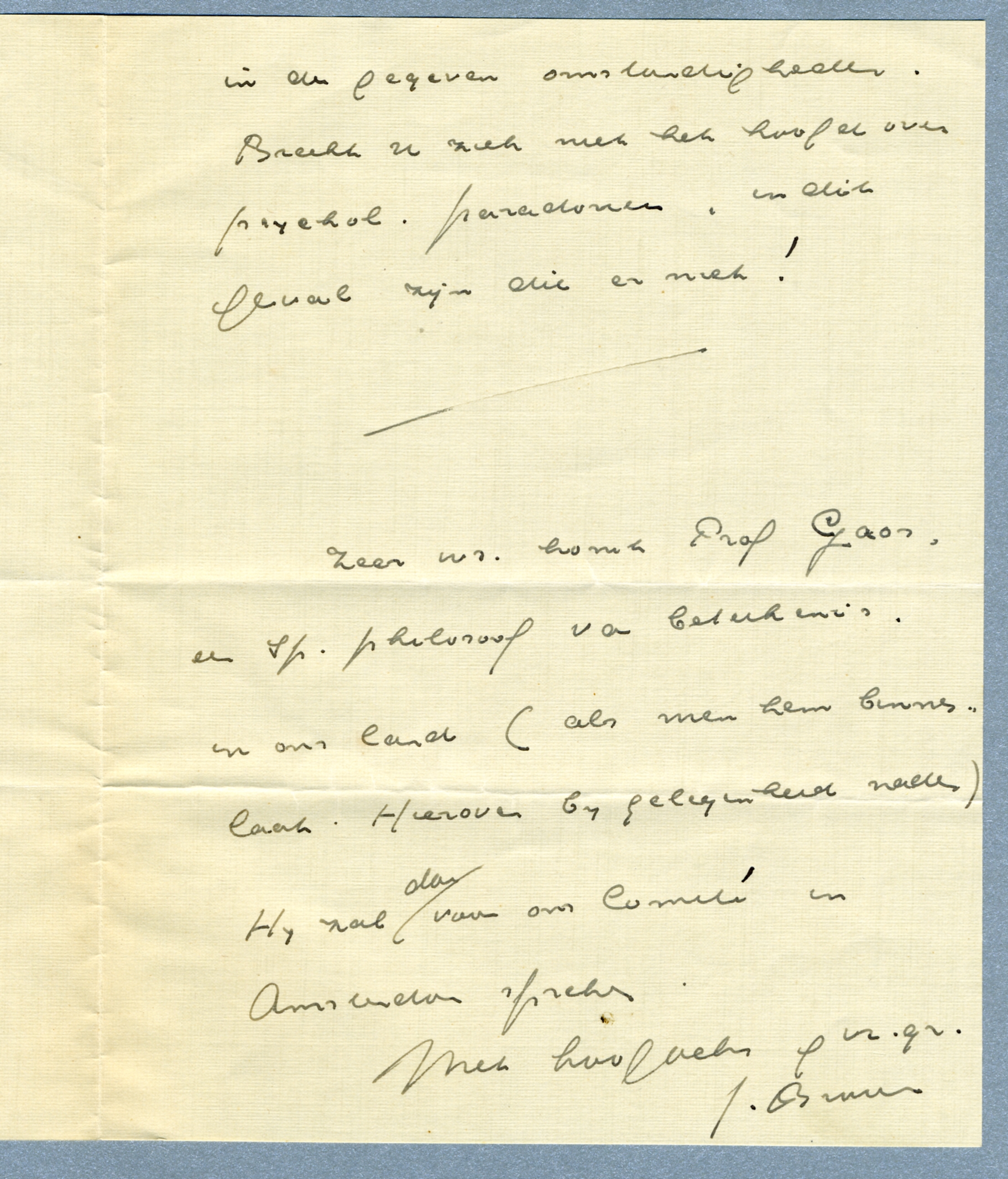 Zeer ws. komt Prof Gaos, een Sp. philosoof van beteekenis, in ons land (als men hem binnenlaat. Hierover bij gelegenheid nader) Hij zal dan voor ons Comité in Amsterdam spreken.