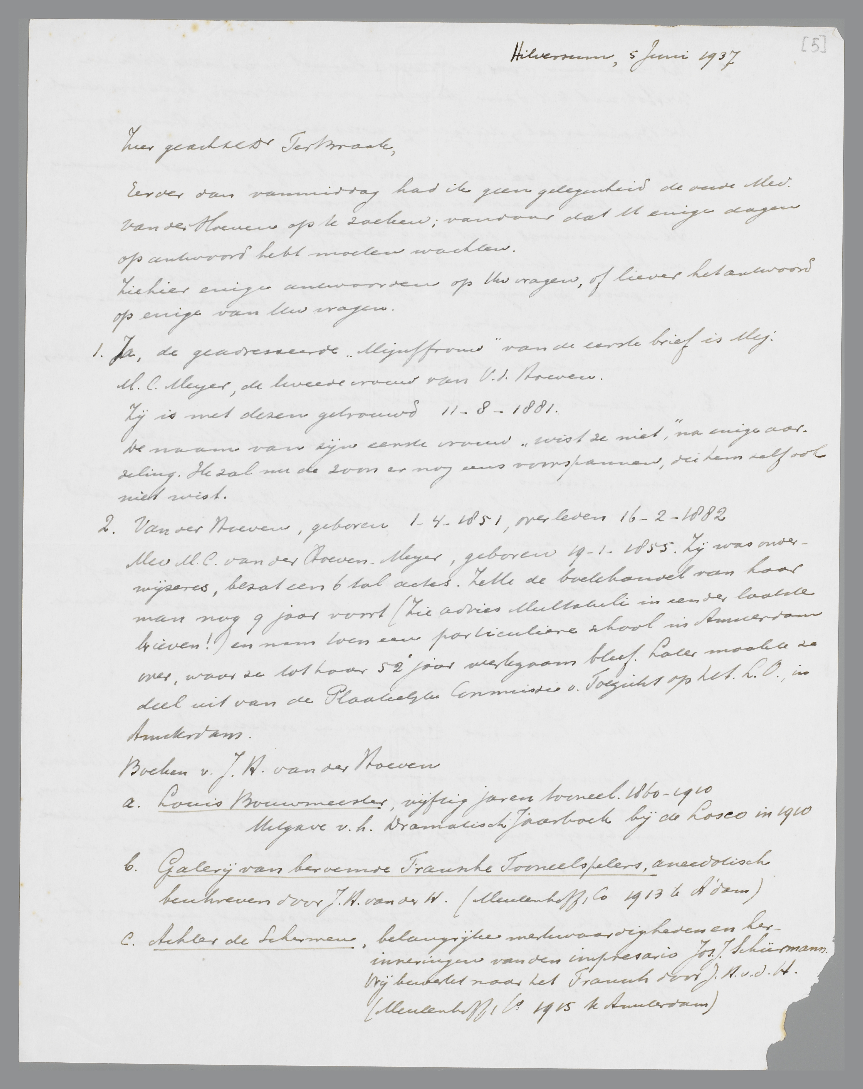 Eerder dan vanmiddag had ik geen gelegenheid de oude Mevr. van der Hoeven op te zoeken; vandaar dat U enige dagen op antwoord hebt moeten wachten.