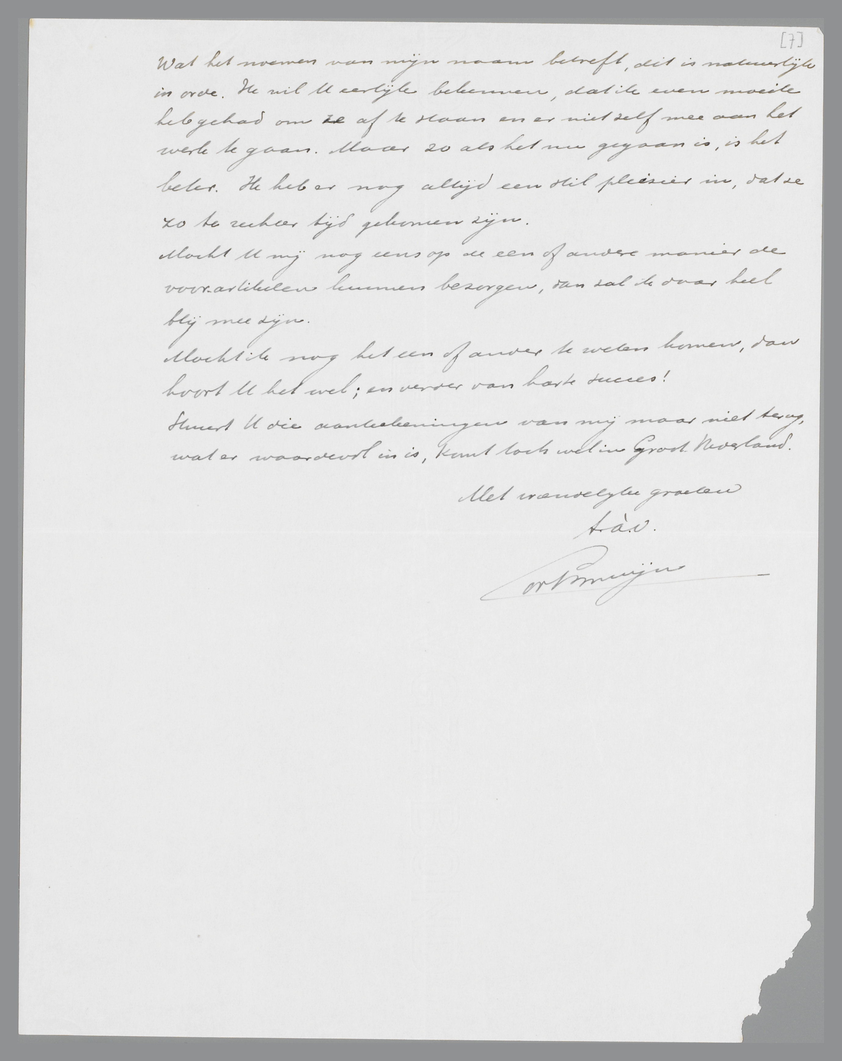 Wat het noemen van mijn naam betreft, dit is natuurlijk in orde. Ik wil U eerlijk bekennen, dat ik even moeite heb gehad om ze af te staan en er niet zelf mee aan het werk te gaan. Maar zo als het nu gegaan is, is het beter. Ik heb er nog altijd een stil pleizier in, dat ze zo te rechter tijd gekomen zijn.