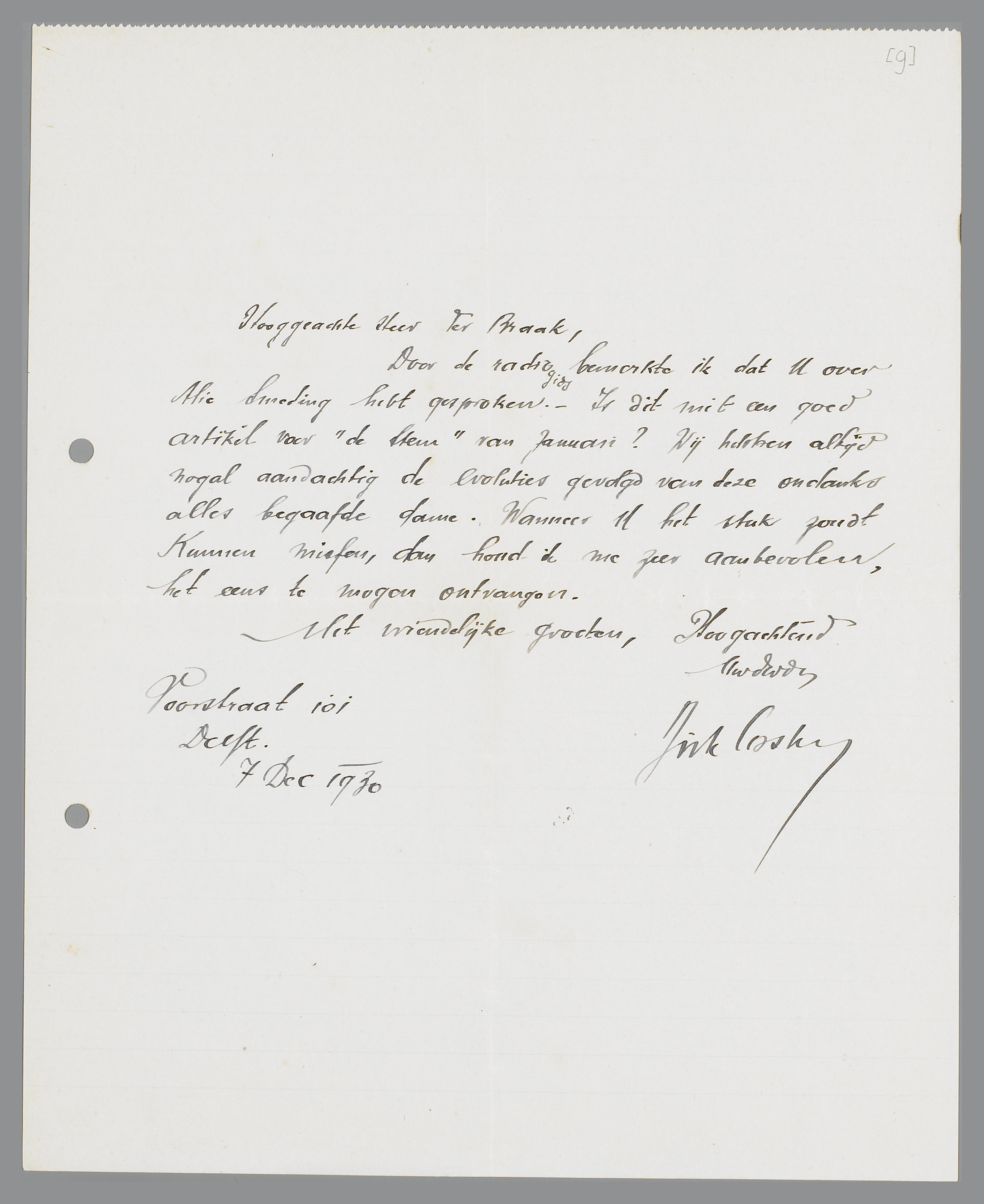 Door de radiogids bemerkte ik dat U over Alie Smeding hebt gesproken. - Is dit niet een goed artikel voor ‘de Stem’ van Januari? Wij hebben altijd nogal aandachtig de evoluties gevolgd van deze ondanks alles begaafde dame. Wanneer u het stuk zoudt kunnen missen, dan houd ik me zeer aanbevolen, het eens te mogen ontvangen.