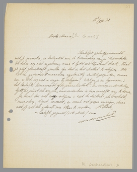 Hartelijk gelukgewenscht met je promotie, en bedankt voor de toezending van je dissertatie. Ik heb er nog niet in gelezen, maar het lijkt een kapitaal boek. 't Zal je niet gemakkelijk gevallen zijn dat in het Duitsch te schrijven. Ik heb nu gedurende 8 maanden regelmatig Duitsch gesproken, maar zou er toch nog niet in wagen te schrijven. Wat ga je nu beginnen: het hachelijke leeraarsambt of de journalistiek? Een correspondentschap lijkt me juist iets voor jou, maar misschien is daar moeilijk aan te komen.