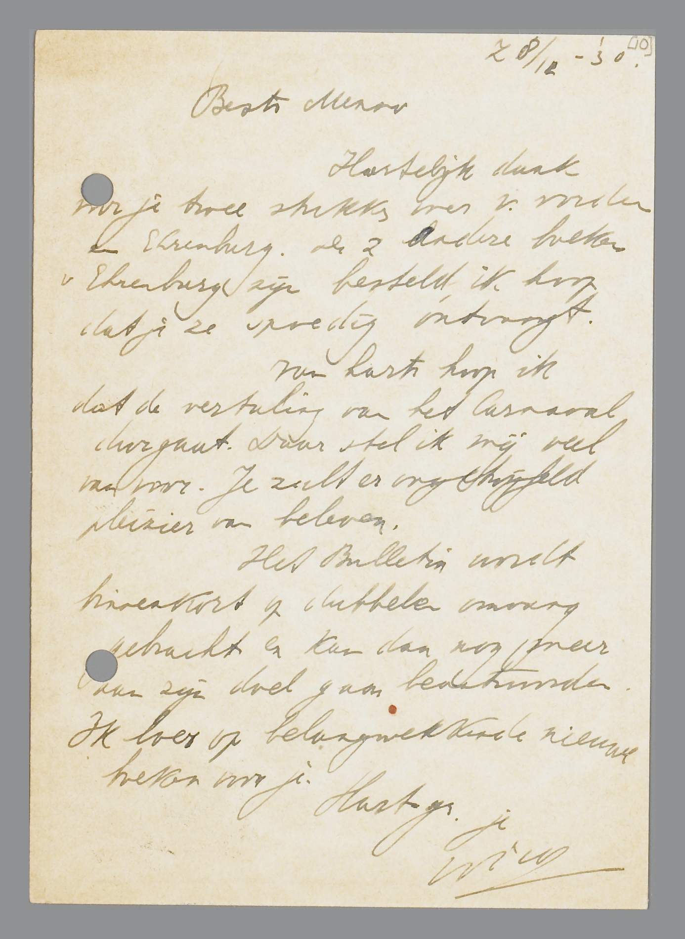 Hartelijk dank voor je twee stukken over Van Voorden en Ehrenburg. De 2 andere boeken Ehrenburg zijn besteld, ik hoop dat je ze spoedig ontvangt.