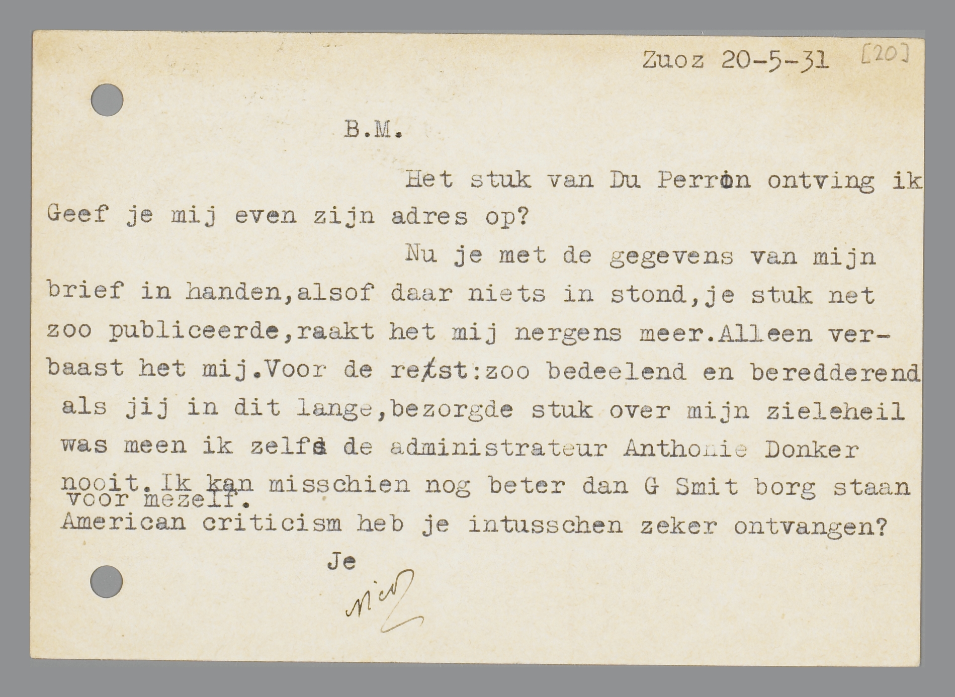 Het stuk van Du Perron ontving ik. Geef je mij even zijn adres op?