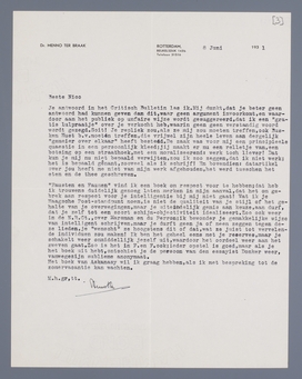 Je antwoord in het Critisch bulletin las ik. Mij dunkt dat je beter geen antwoord had kunnen geven dan dit, waar geen argument in voorkomt, en waardoor aan het publiek op unfaire wijze wordt gesuggereerd, dat ik een ‘gratis lulpraatje’ over je verkocht heb, waarin geen verstandig woord wordt gezegd. Soit! Je repliek zou, als ze mij zou moeten treffen, ook Busken Huet b.v. moeten treffen, die vrijwel zijn heele leven aan dergelijk ‘gemeier over elkaar’ heeft besteed. De zaak was voor mij een principieele quaestie in een persoonlijk kleed; jij maakt er nu een relletje van, een botsing op een straathoek, met een moraliseerend: werk toch liever! Dat kun je mij nu niet bepaald verwijten, zou ik zoo zeggen, dat ik niet werk; het is bepaald gênant, zooveel als ik schrijf! En bovendien: dat artikel over jou heeft me niet van mijn werk afgehouden, het werd tusschen het eten en de thee geschreven.