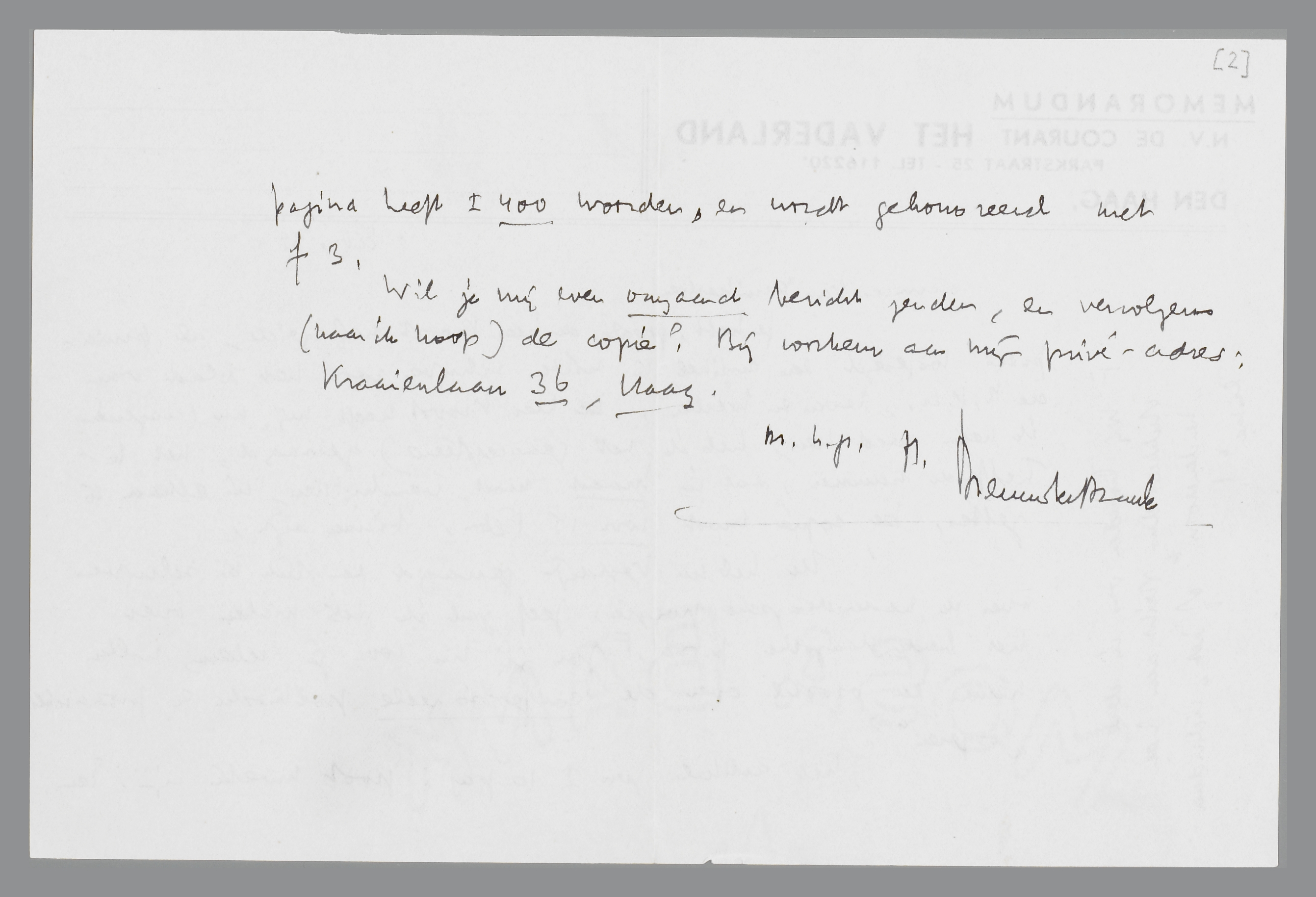Wil je mij even omgaand bericht zenden, en vervolgens (naar ik hoop) de copie? Bij voorkeur aan mijn privé-adres: Kraaienlaan 36, Haag.