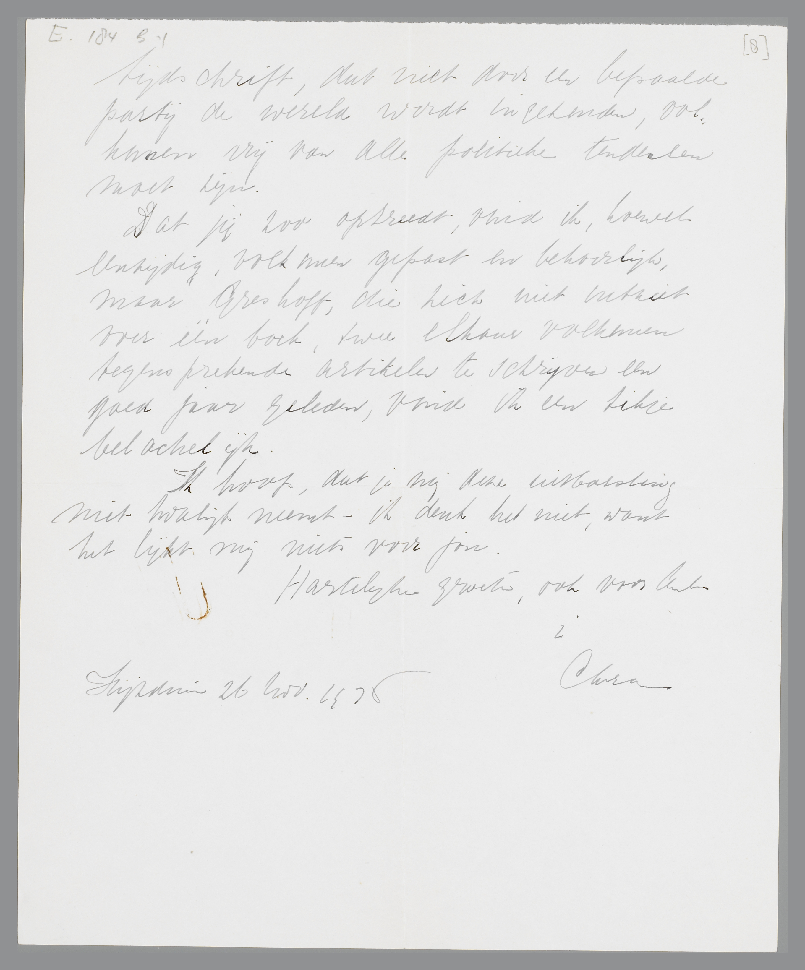 Dat jij zoo optreedt, vind ik, hoewel eenzijdig, volkomen gepast en behoorlijk, maar Greshoff, die zich niet ontziet voor één boek, twee elkaar volkomen tegensprekende artikelen te schrijven een goed jaar geleden, vond ik een tikje belachelijk.