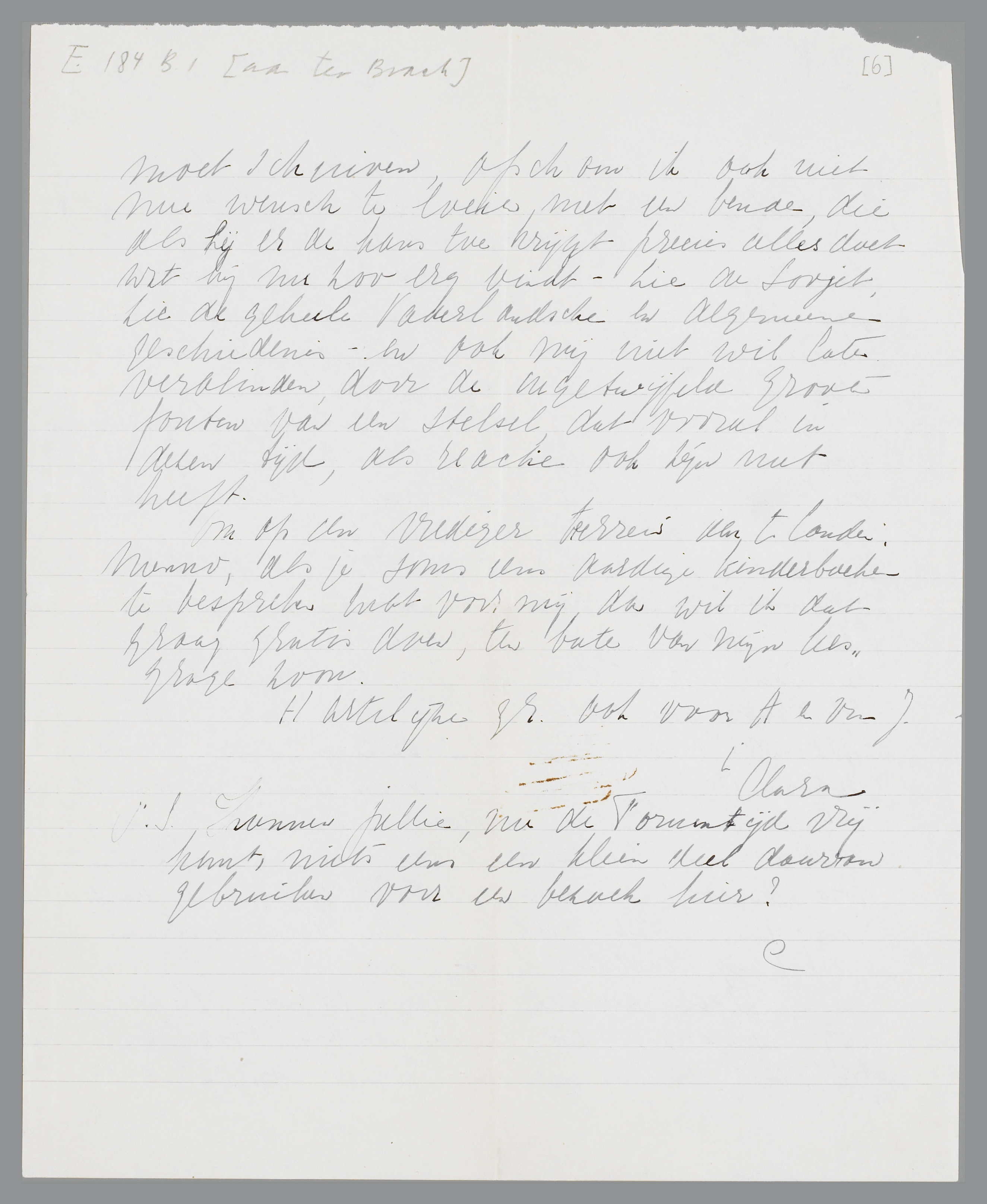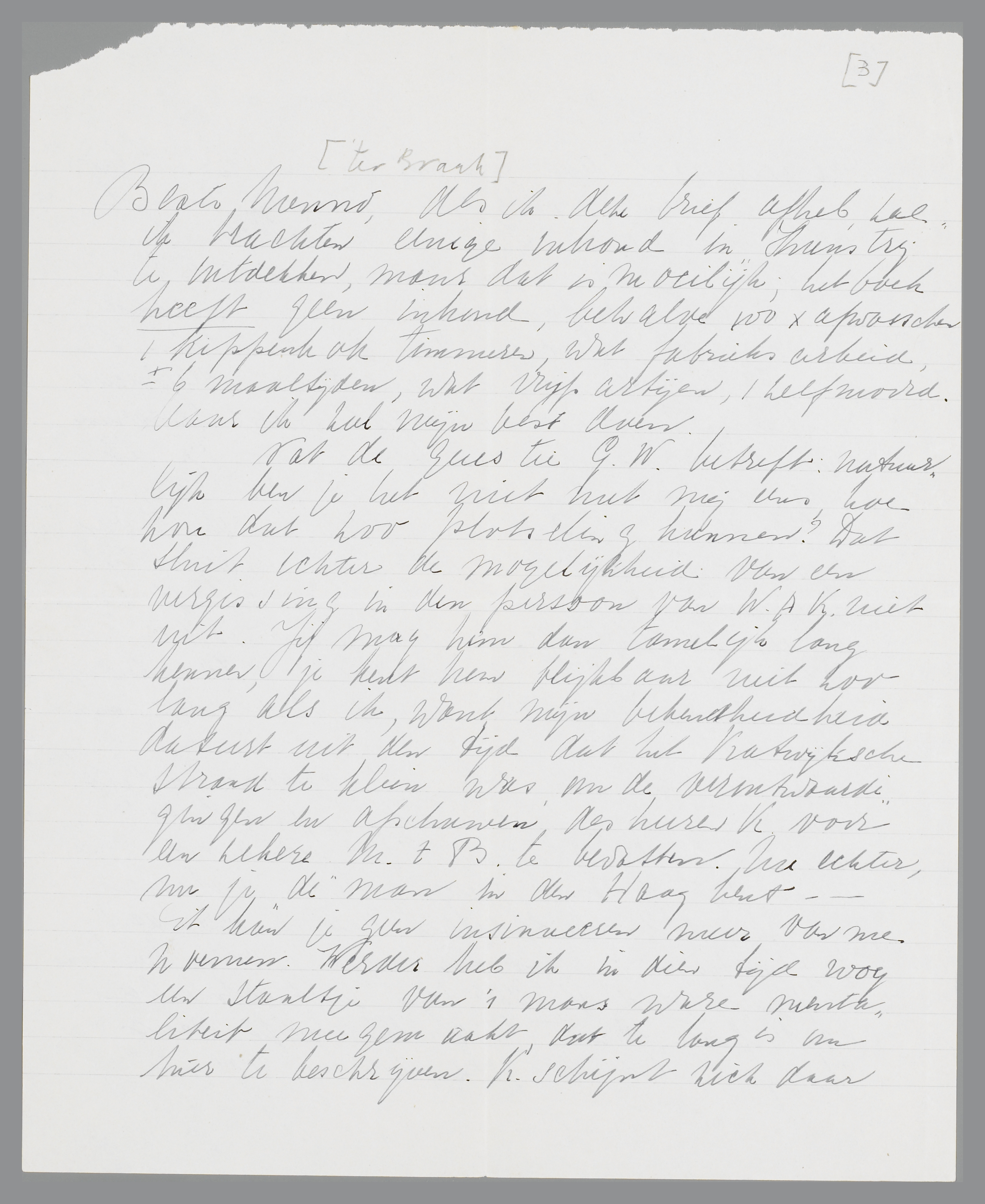 Wat de questie G.W. betreft: natuurlijk ben je het niet met mij eens, hoe zou dat zoo plotseling kunnen? Dat sluit echter de mogelijkheid van een vergissing in den persoon van W.A.K. niet uit. Jij mag hem dan tamelijk lang kennen, je kent hem blijkbaar niet zoo lang als ik, want mijn bekendheid dateert uit den tijd dat het Katwijksche strand te klein was, om de verontwaardigingen en afschuwen des heeren K. voor een zekere M.t.B. te bevatten. Nu echter, nu jij ‘de’ man in Den Haag bent...