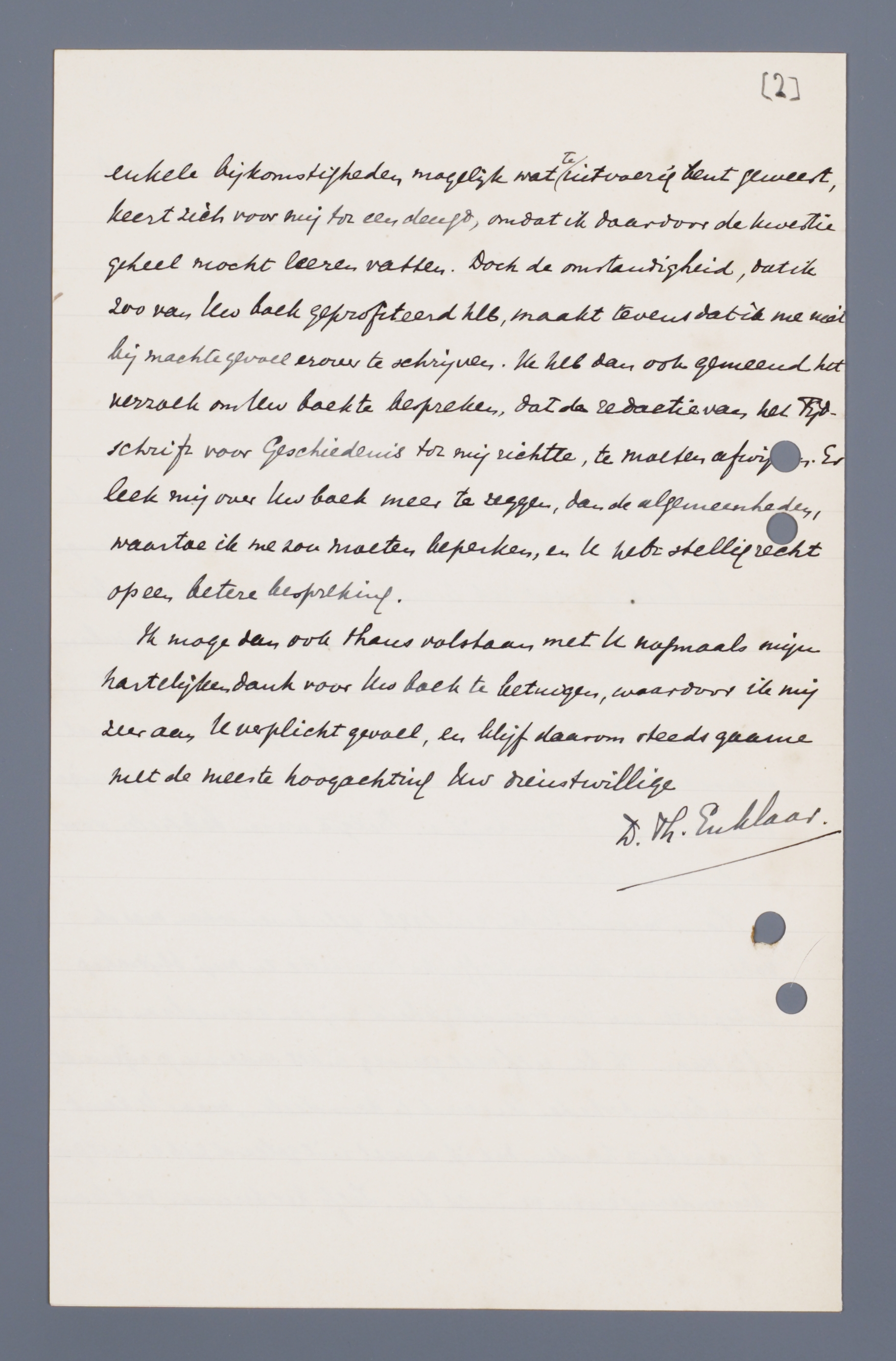 Ik moge dan ook thans volstaan met U nogmaals mijn hartelijken dank voor uw boek te betuigen, waardoor ik mij zeer aan U verplicht gevoel, en blijf daarom steeds gaarne met de meeste hoogachting Uw dienstwillige,