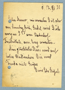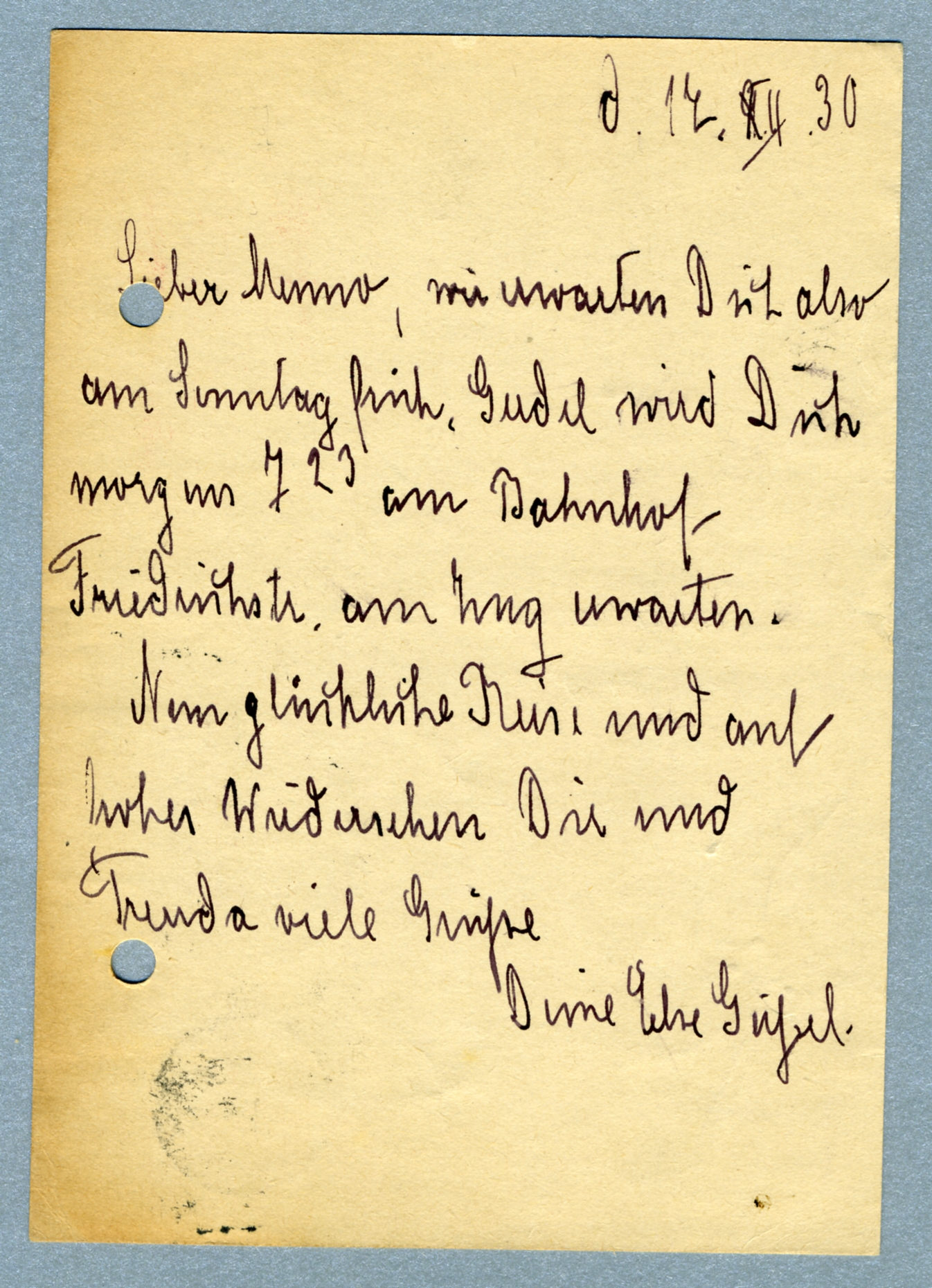 Wir erwarten Dich also am Sonntag früh, Gerdel wird Dich morgen 7.23 am Bahnhof Friedrichstr. am Zug erwarten.
