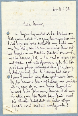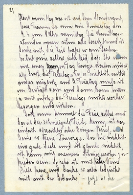 Bist Du sehr froh dass Gerda bei Dir ist? Sie schreibt ja sehr selig und ich wünsche Euch vor ganzem Herzen alles Glück, dass eine Mutter nur wünschen kann. Wenn doch Rotterdam nicht so weit wäre das macht mir oft sehr treurig, glaube mir, es fällt mir sehr schwer, gerda so weit und so schnell [xxxx], aber Ihr Glück [xxx][xxx][xxx].