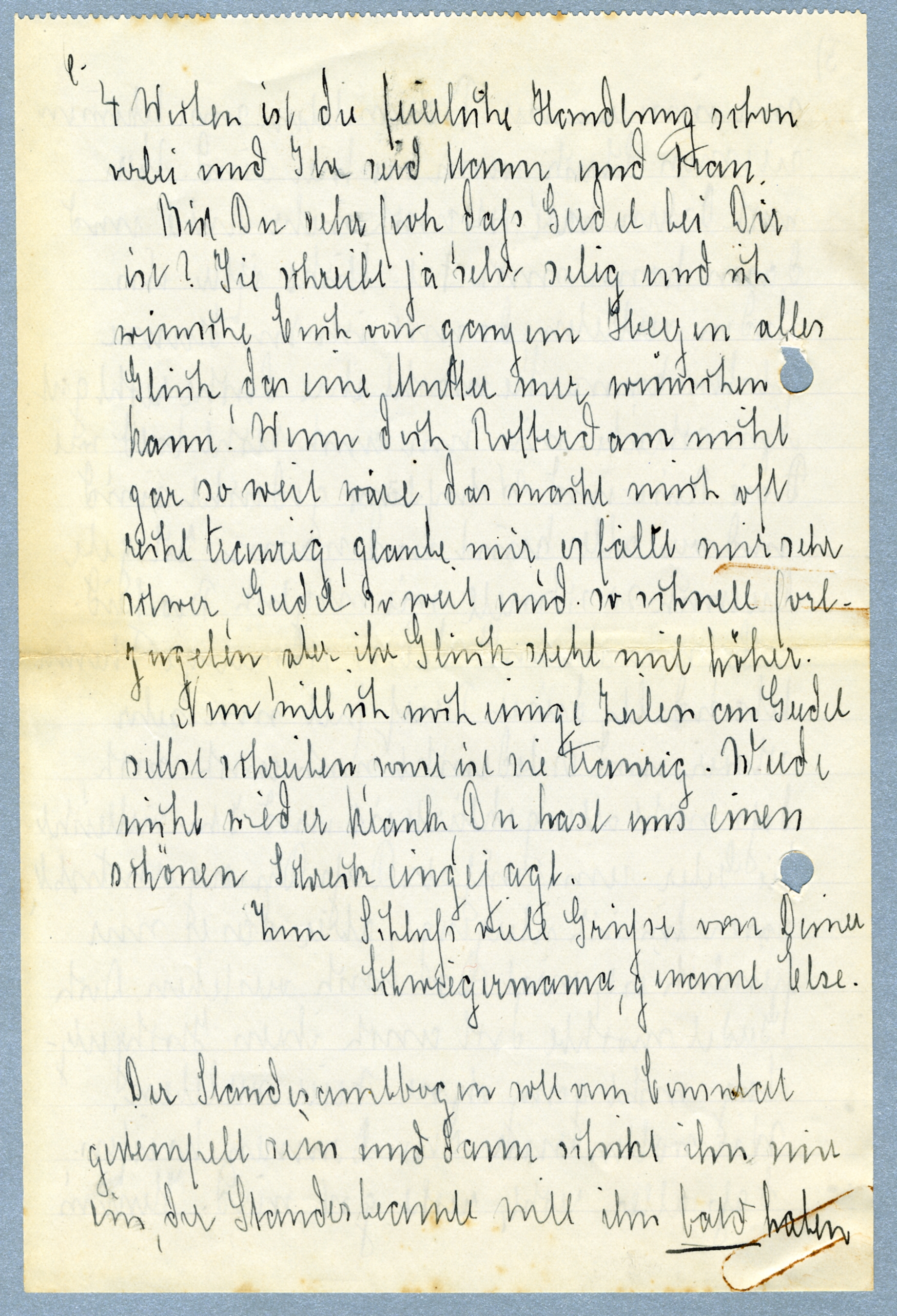 Zum Schluss viele Grüsse von Deiner Schwiegermama, gename[?] Else.