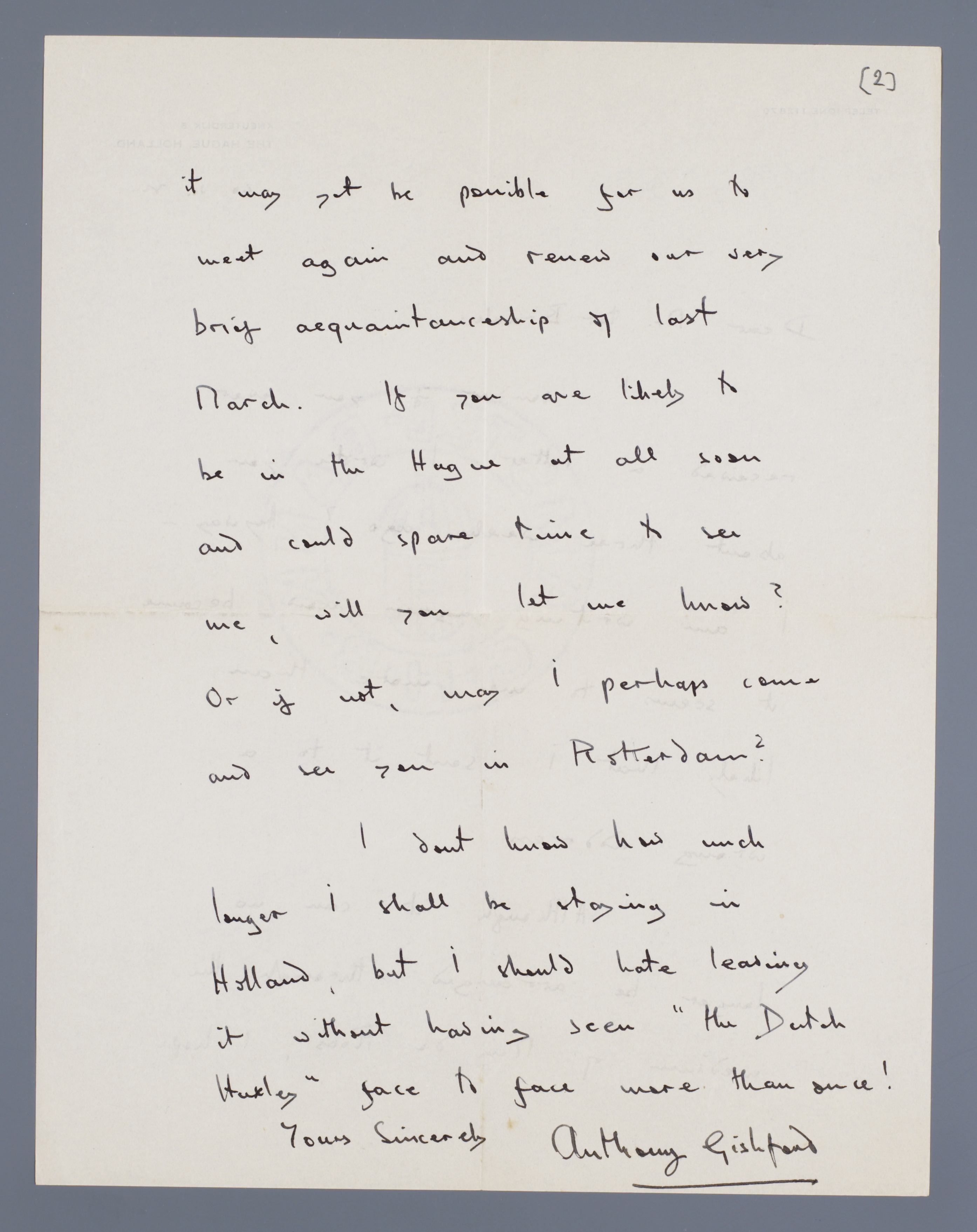 I don't know how much longer I shall be staying in Holland, but I should hate leaving it without having seen ‘the Dutch Huxley’ face to face more than once!
