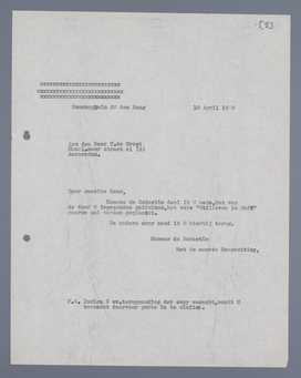 P.S. Indien U ev. terugzending der copy wenscht, wordt U verzocht daarvoor porto in te sluiten.