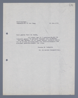 Secretariaat Pomonaplein 22 den Haag 19 Oct. 1934