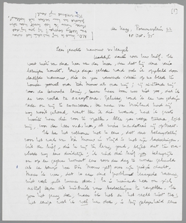 Hartelijk dank voor Uw brief. Ik weet niets van dezen heer van der Meer, dan dat hij deze serie lezingen houdt. Eenige dagen geleden werd ook ik opgebeld door dezelfde mevrouw, die er zeer verwarde ideeën op na bleek te houden zoowel over Dèr Mouw als over mij; zij inviteerde mij voor de bewuste lezing, maar haar toon was niet zoo, dat ik er voor voelde te accepteeren. Gelukkig vond ik een zeer geldige reden om mij te excuseeren. Den naam van Vriesland had zij nog nooit gehoord, want toen ik die noemde, had ik groote moeite haar die voor te spellen. Alles zeer veege teekenen, lijkt mij, voor den heer v.d. Meer, als wiens mandataris zij optreedt.