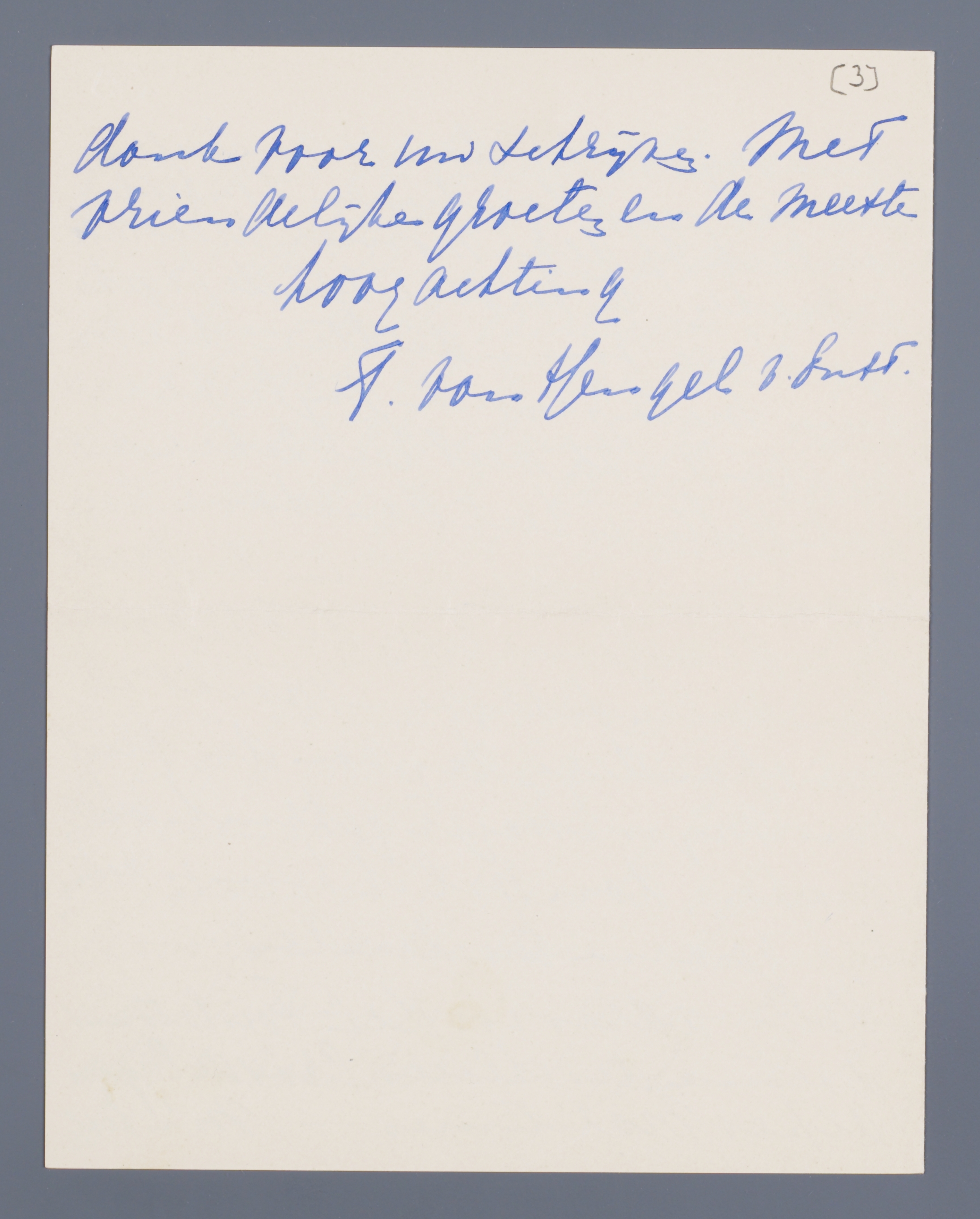 M'n beste dank voor uw schrijven. Met vriendelijke groeten en de meeste hoogachting