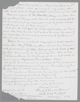 In the first place Mr. Meesters can not understand why the Hero of the late Jan Van der Hoeven, did not press the claim against [Edw.?] This is very simple. At the time my father died in [1850?], I was only 10 years old while my brothers Maarten and Jan were still younger. Within a few years both Maarten and myself left Holland for America while Jan went to the East-Indies.