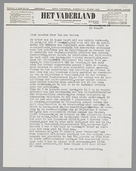 Origineel: Den Haag, Letterkundig Museum. Machineschrift. Briefpapier Het Vaderland.