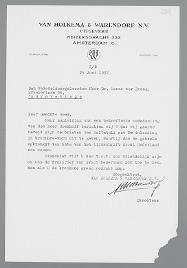 Misschien wilt U dan t.z.t. zoo vriendelijk zijn om ons de drukproef van Groot Nederland zóó toe te zenden als U de brochure graag gedrukt zag.