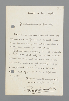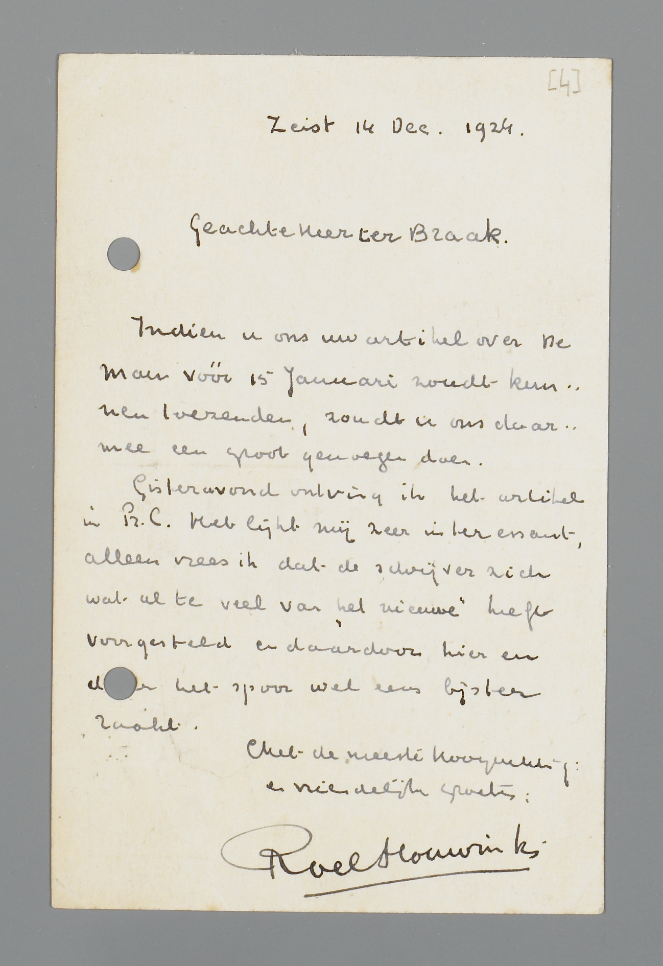Gisteravond ontving ik het artikel in Pr.C. Het lijkt mij zeer interessant, alleen vrees ik dat de schrijver zich wat al te veel van ‘het nieuwe’ heeft voorgesteld en daardoor hier en daar het spoor wel eens bijster raakt.