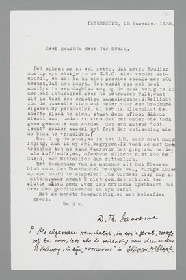Het toezenden van de annonce uit het Nieuwsblad voor den Boekhandel beoogde wel, vurige kolen op myn hoofd te stapelen? Ons oordeel liep nog al uiteen; maar meent U niet ook, dat critiek ten slotte altyd meer over den criticus openbaart dan over den gecritiseerde en zyn werk?