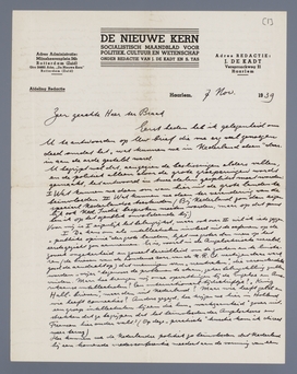II Gesteld dat we nog een lange vredes- en neutraliteits-periode voor de boeg hebben, dan moeten we proberen de Ned. intellectuelen ervan te overtuigen dat zij ‘maatschappelijk’ leiding moeten en kunnen geven. Voor mij is de grote moeilijkheid: hoe bereiken we die intellectuelen (de studenten niet te vergeten). Wat mij bij het oprichten van de Inter voor de geest zweefde, was een reeks van clubs overal in het land, die voorbereidend werk zouden doen door de intell. met de maatschappelijke kant van de meeste vraagstukken te confronteren en ze te overtuigen van de noodzakelijkheid om leiding te geven aan een ‘gematigde’ politiek. Men moet toch eerst een paar honderd mensen bijeenbrengen die dergelijke opvattingen hebben en die er iets voor willen doen, vóór men verder kan gaan. We zijn nog pas aan het begin van de voorbereiding. (Ik zei zo juist ‘die er iets voor willen doen’ want de pathetische uitdrukking ‘die er offers voor willen brengen’ is me te kras; maar ergens in die buurt ligt voor mij het verschil tussen de ‘levens-intellectuelen’ - die er wat narigheid voor over hebben, wat tijd en wat geld - en de ‘luxe-intellectuelen’ die over alles willen redeneren, maar die ophouden zodra het méér wordt dan een ‘flirt’ met de politiek, zodra er behalve het ‘er iets voor over hebben’ ook nog het half-routinegedoe van organisatie en propaganda bij komt - nogmaals, de kwestie van ‘luxe’ heeft bij mij betrekking op deze dingen en niet op het zich bezighouden met kwesties die de gewone man niet van direct practisch nut acht; het is waarachtig geen poging om meer dan gewone intelligentie en meer dan gewone gevoeligheid te verbieden).