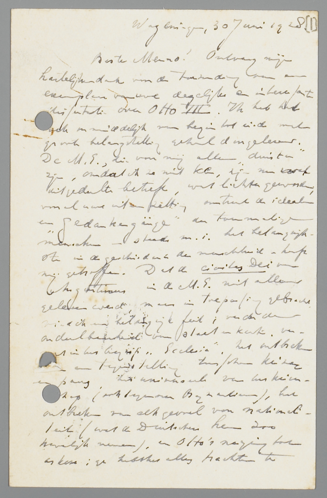 Ontvang mijn hartelijken dank voor den toezending van een exemplaar van uwe degelijke en interessante dissertatie over Otto III. Ik heb het ook onmiddellijk van begin tot eind met groote belangstelling geheel doorgelezen.