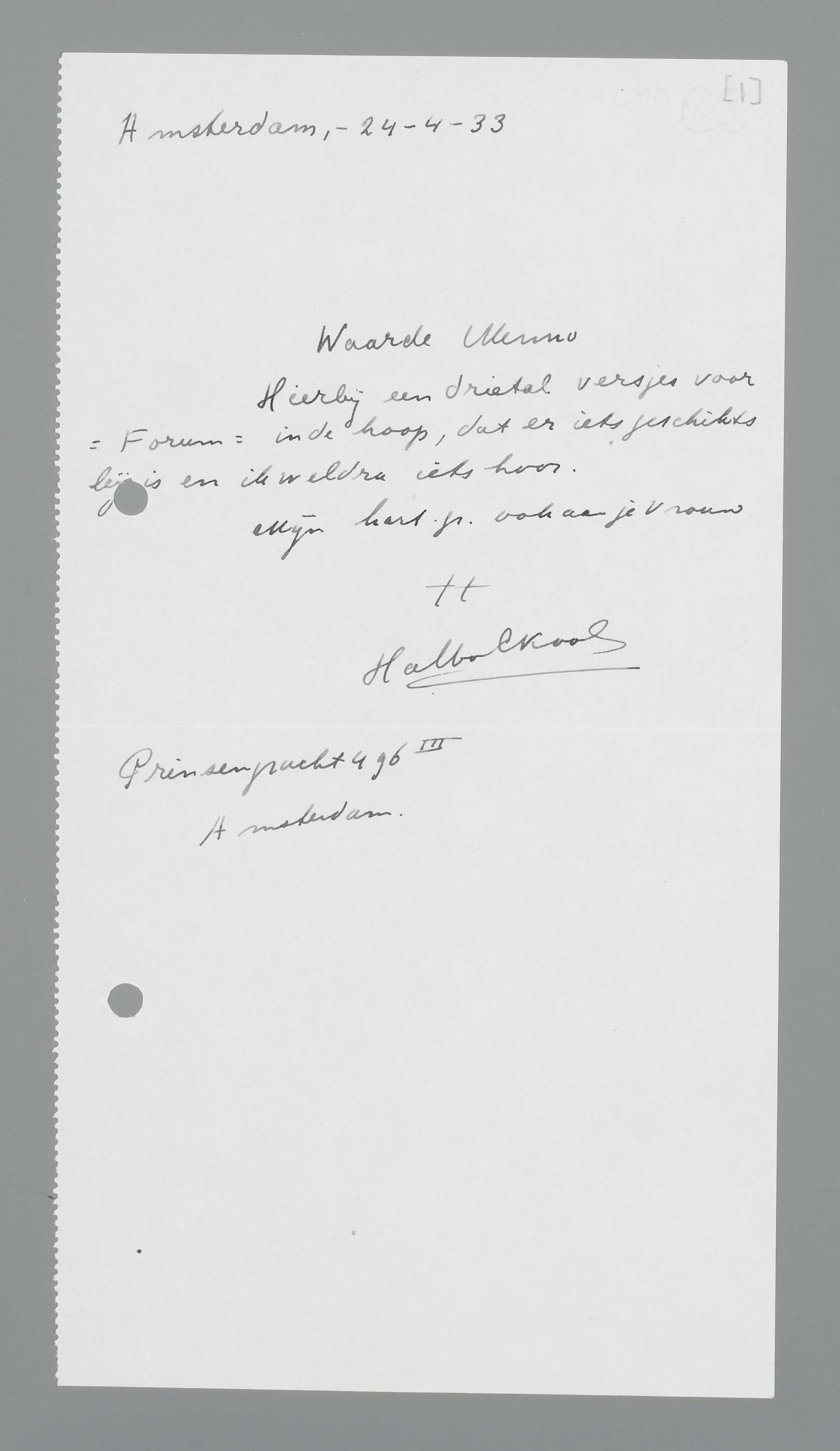 Hierbij een drietal versjes voor ‘Forum’ in de hoop, dat er iets geschikt bij is en ik weldra iets hoor.