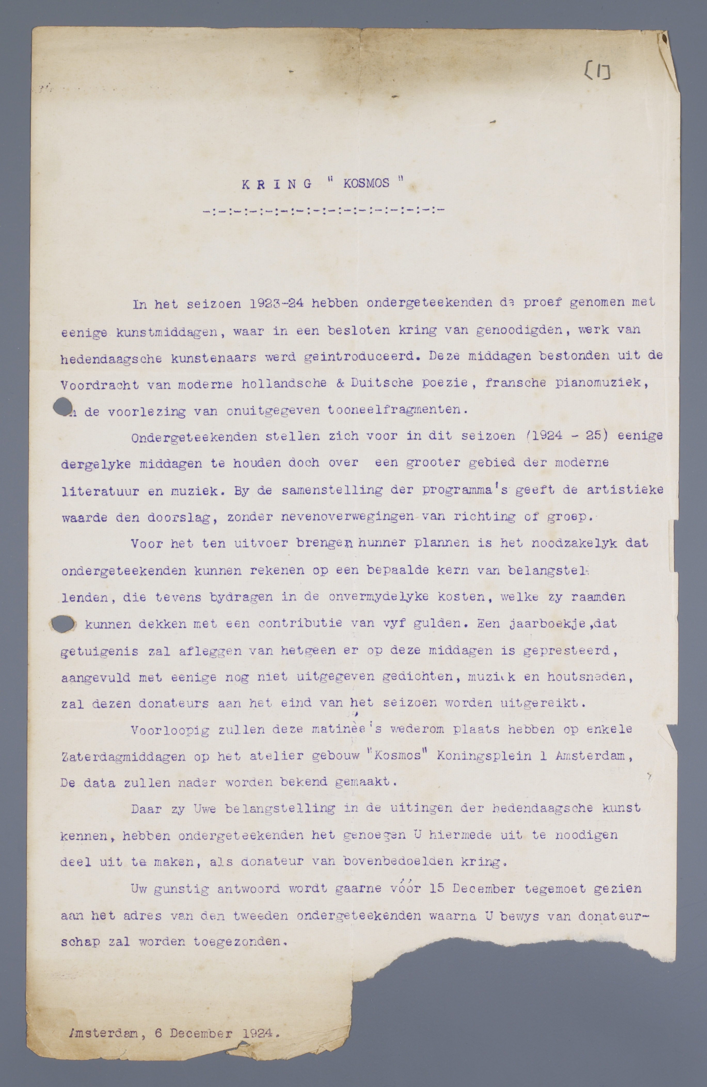 Briefwisseling Menno ter Braak - Kring ‘Kosmos’