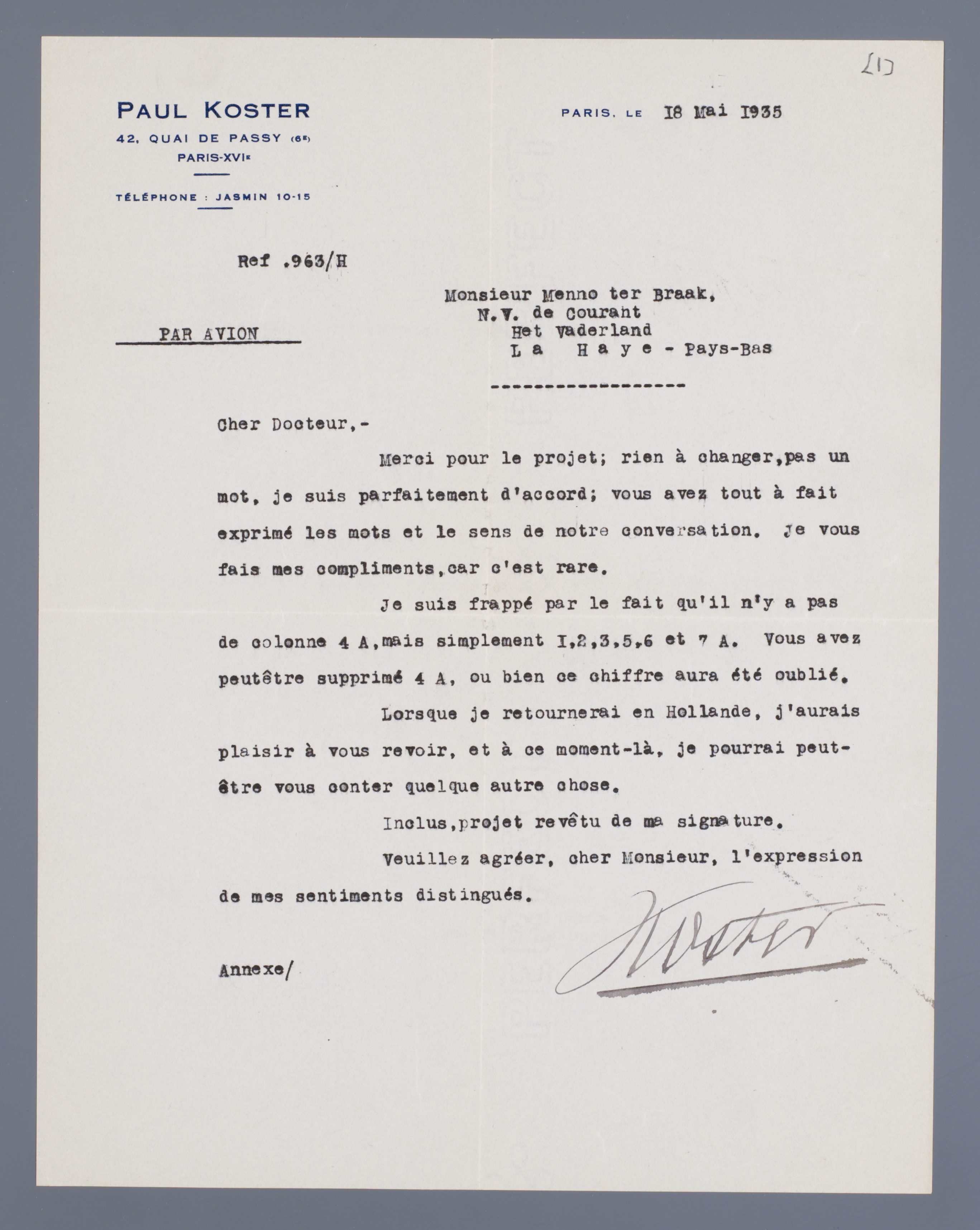 Merci pour le projet; rien à changer, pas un mot, je suis parfaitement d'accord; vous avez tout à fait exprimé les mots et le sens de notre conversation. Je vous fais mes compliments, car c'est rare.
