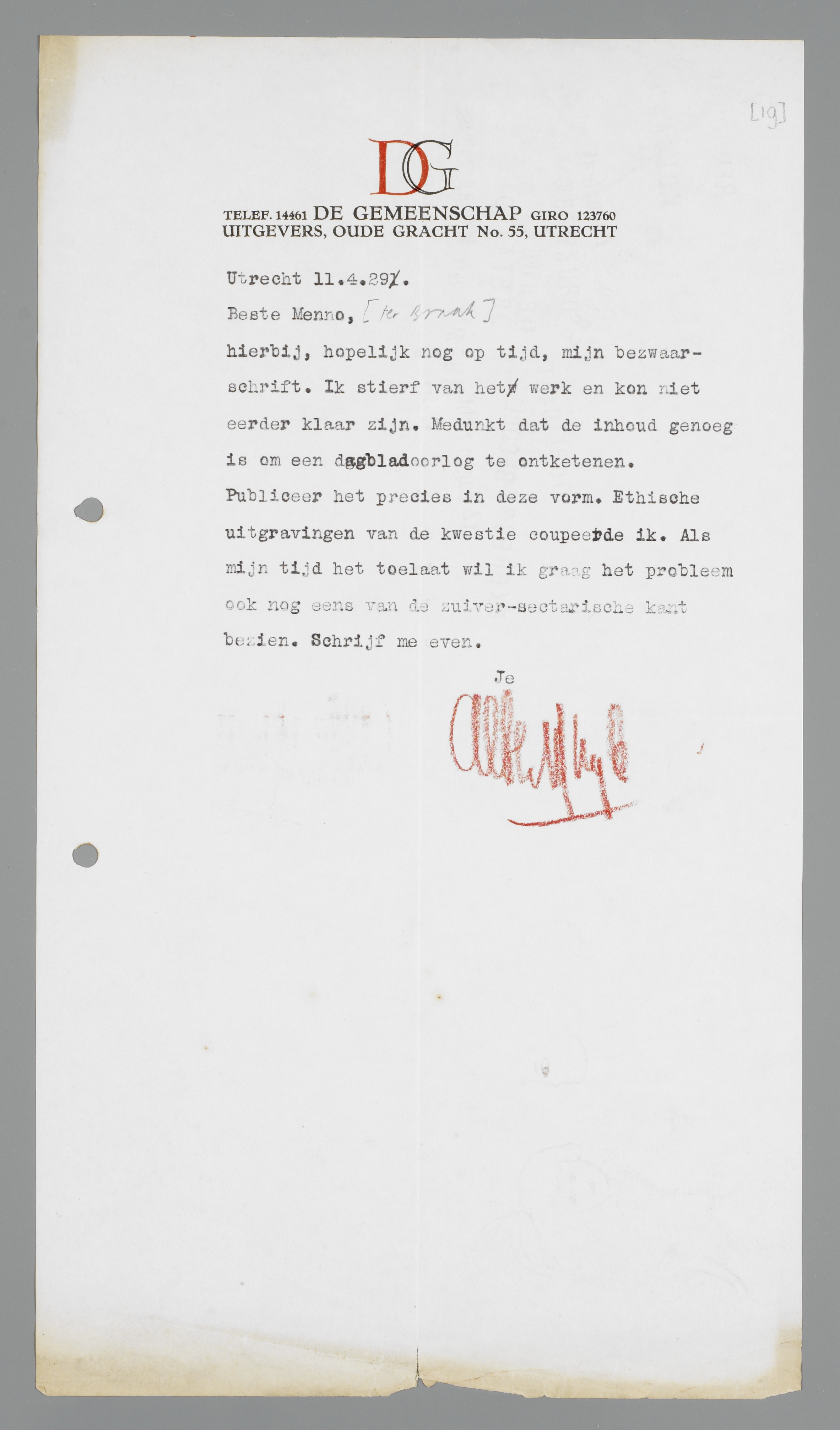 Publiceer het precies in deze vorm. Ethische uitgravingen van de kwestie coupeerde ik. Als mijn tijd het toelaat wil ik graag het probleem ook nog eens van de zuiver-secretarische kant bezien. Schrijf me even.