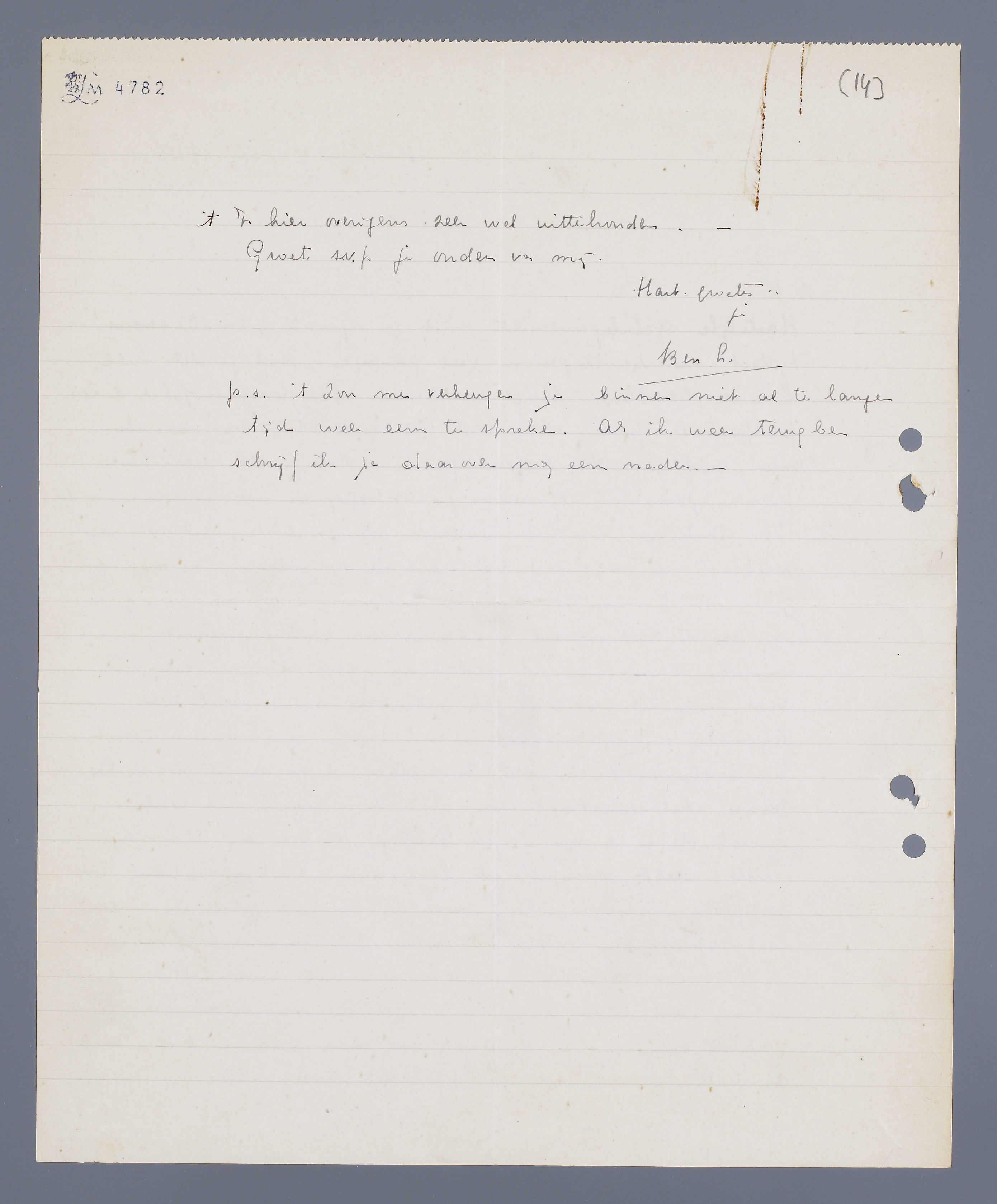 p.s. 't Zou me verheugen je binnen niet al te langen tijd weer eens te spreken. Als ik weer terug ben schrijf ik je daarover nog eens nader. -