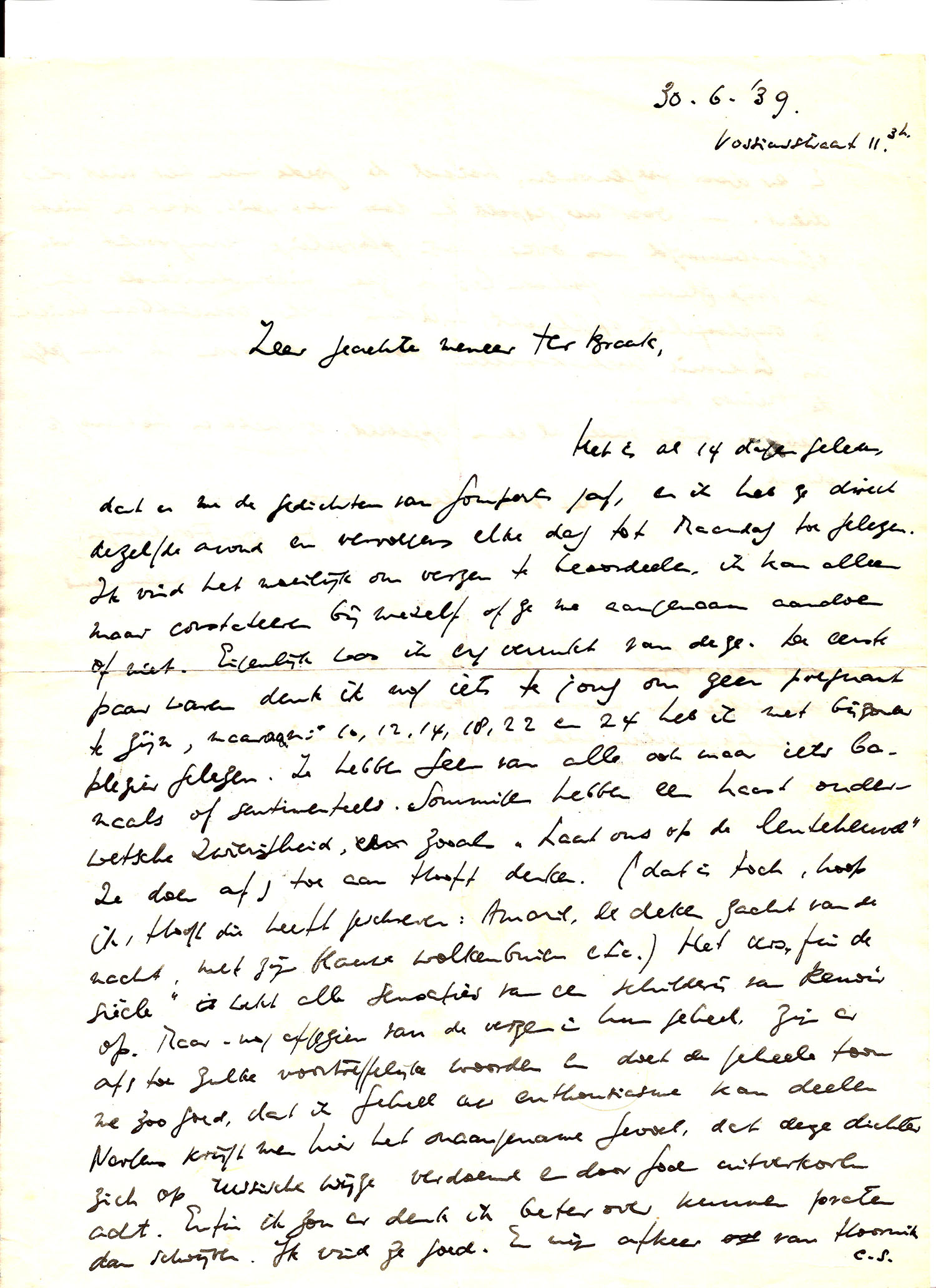 Het is al 14 dagen geleden, dat u me de gedichten van Gomperts gaf, en ik heb ze direct dezelfde avond en vervolgens elke dag tot Maandag toe gelezen.