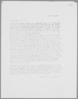 Wat de verzending betreft: zou je niet - op kosten van De Bijenkorf natuurlijk - zelf de documenten kunnen brengen? Het is maar een idee van me, en ik weet niet, of je er tijd of gelegenheid voor hebt, maar deze methode zou de veiligste zijn. De Bijenkorf zal je dat stellig willen vergoeden. Ik heb verder naar aanleiding van je aanteekening op mijn ‘rondschrijven’ aan de commissie nog eens aan Zijlstra geschreven, dat jou alle revisie moet worden gezonden, omdat wij den tekst anders niet verantwoord achten.
