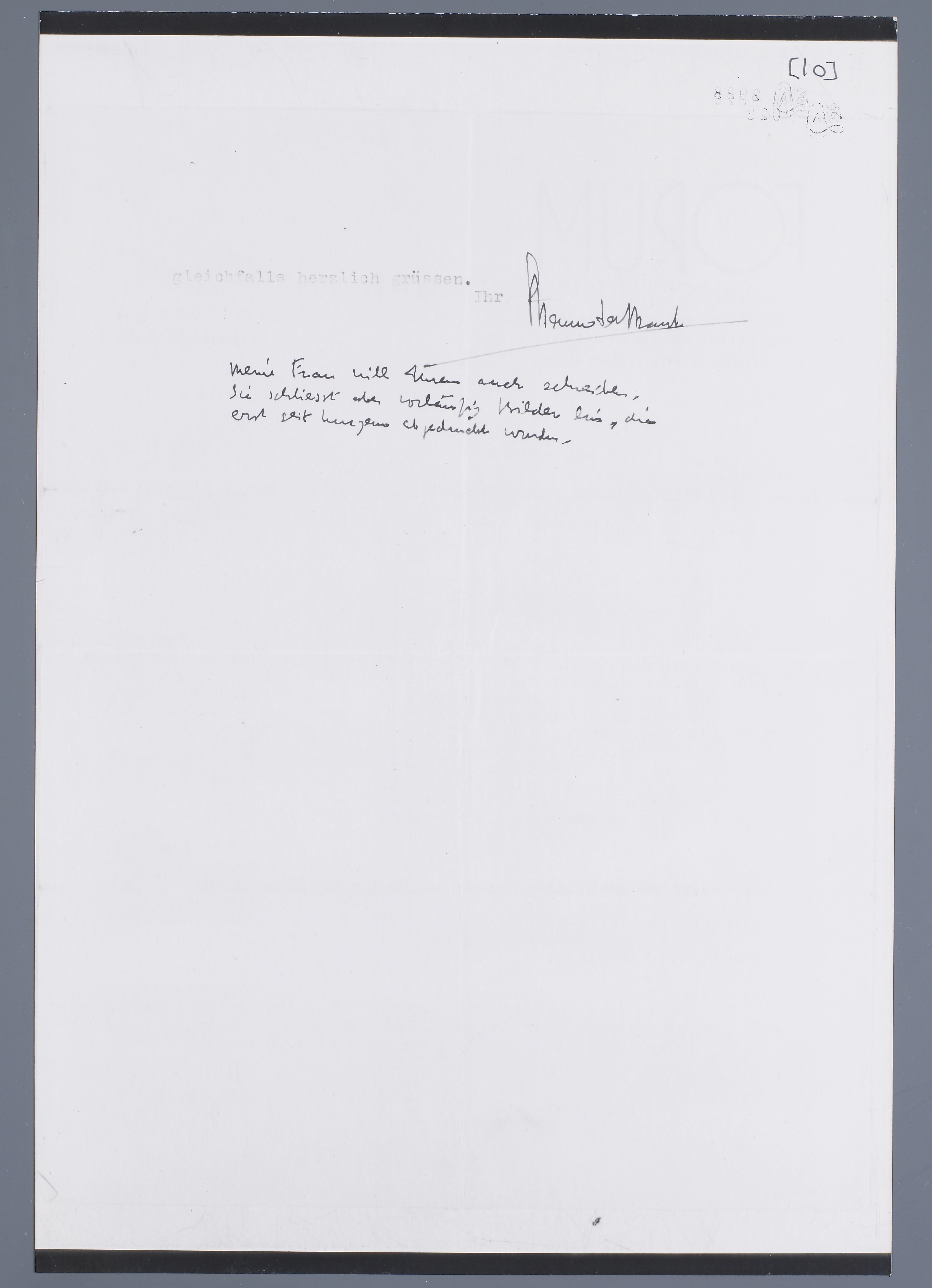 Meine Frau will Ihnen auch schreiben. Sie schliesst aber vorläufig Bilder ein, die erst seit kurzem abgedruckt wurden.