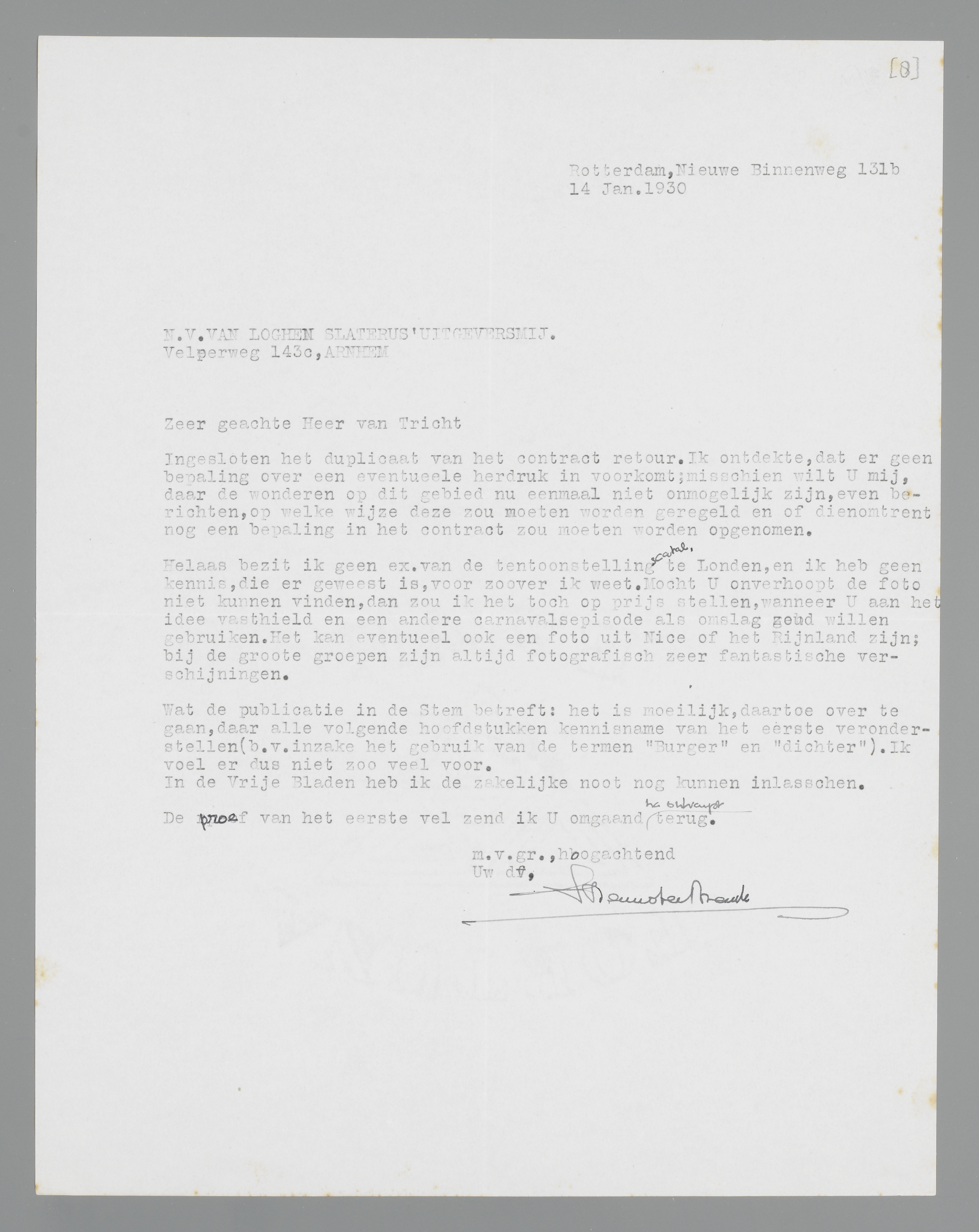De proef van het eerste vel zend ik U omgaand na ontvangst terug.