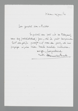 Ingesloten een foto uit De Telegraaf van 29 (ochtendblad) Jan., die ik juist bespeurde. Iets dergelijks zweeft mij voor den geest, als uw pogingen inzake Hier. Bosch mochten mislukken.
