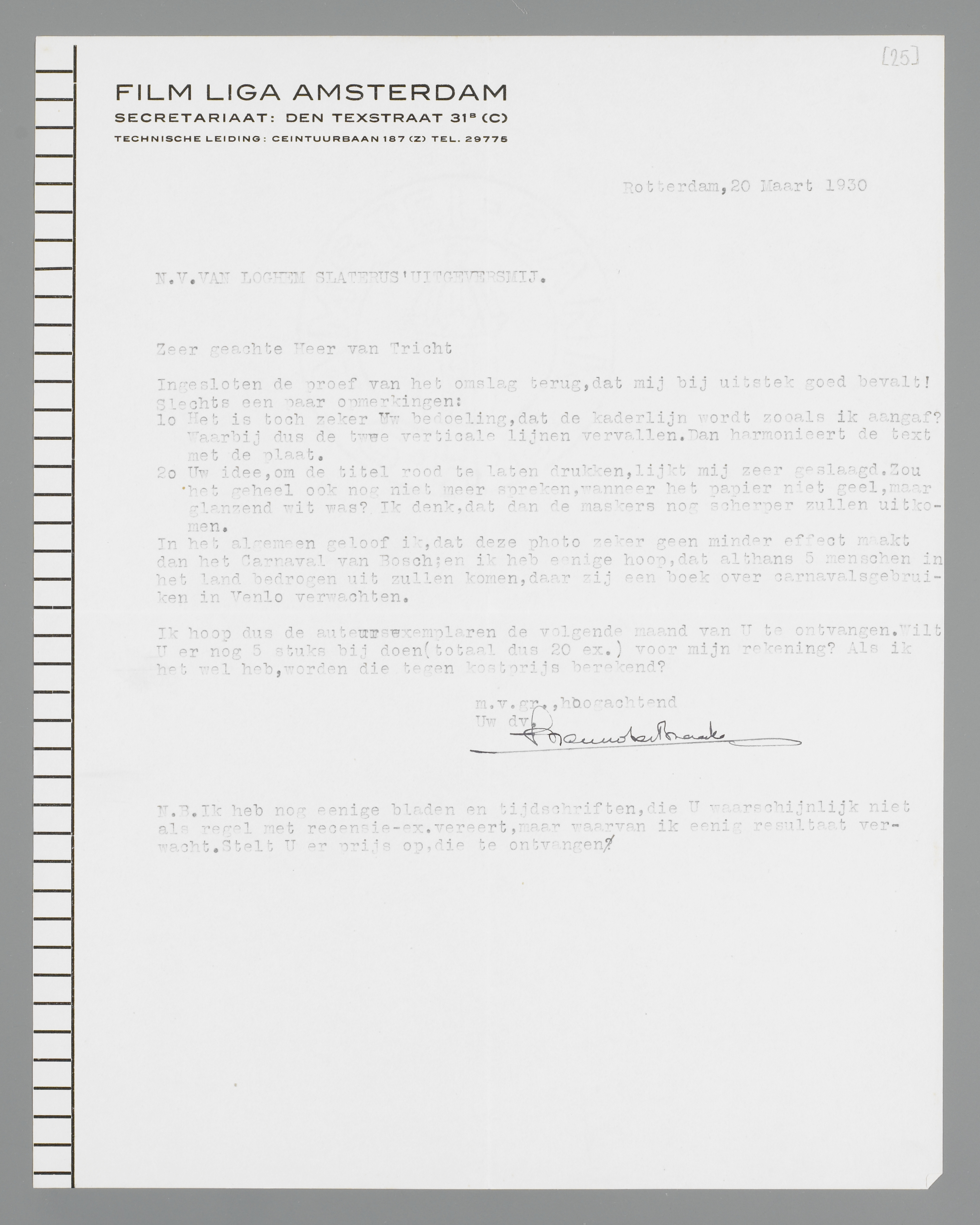 N.B. Ik heb nog eenige bladen en tijdschriften, die U waarschijnlijk niet als regel met recensie-ex. vereert, maar waarvan ik eenig resultaat verwacht. Stelt U er prijs op die te ontvangen?