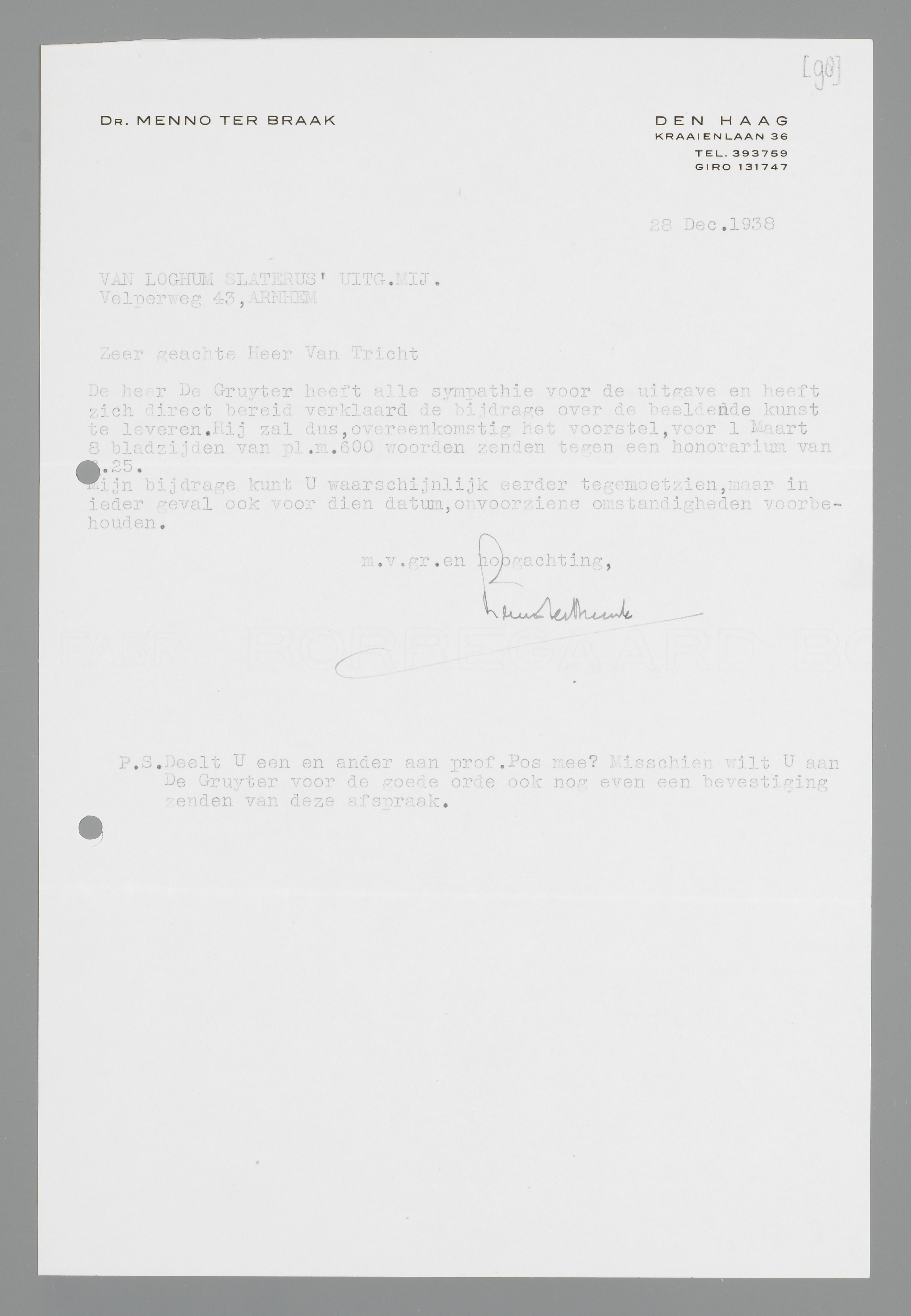 P.S. Deelt U een en ander aan prof. Pos mee? Misschien wilt U aan De Gruyter voor de goede orde ook nog even een bevestiging zenden van deze afspraak.