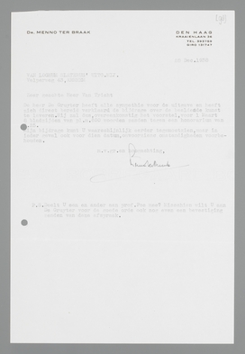 De heer De Gruyter heeft alle sympathie voor de uitgave en heeft zich direct bereid verklaard de bijdrage over de beeldende kunst te leveren. Hij zal dus, overeenkomstig het voorstel, voor 1 Maart 8 bladzijden van pl.m. 600 woorden zenden tegen een honorarium van f.25.