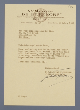 Briefwisseling Menno ter Braak - Magazijn De Bijenkorf N.V.
