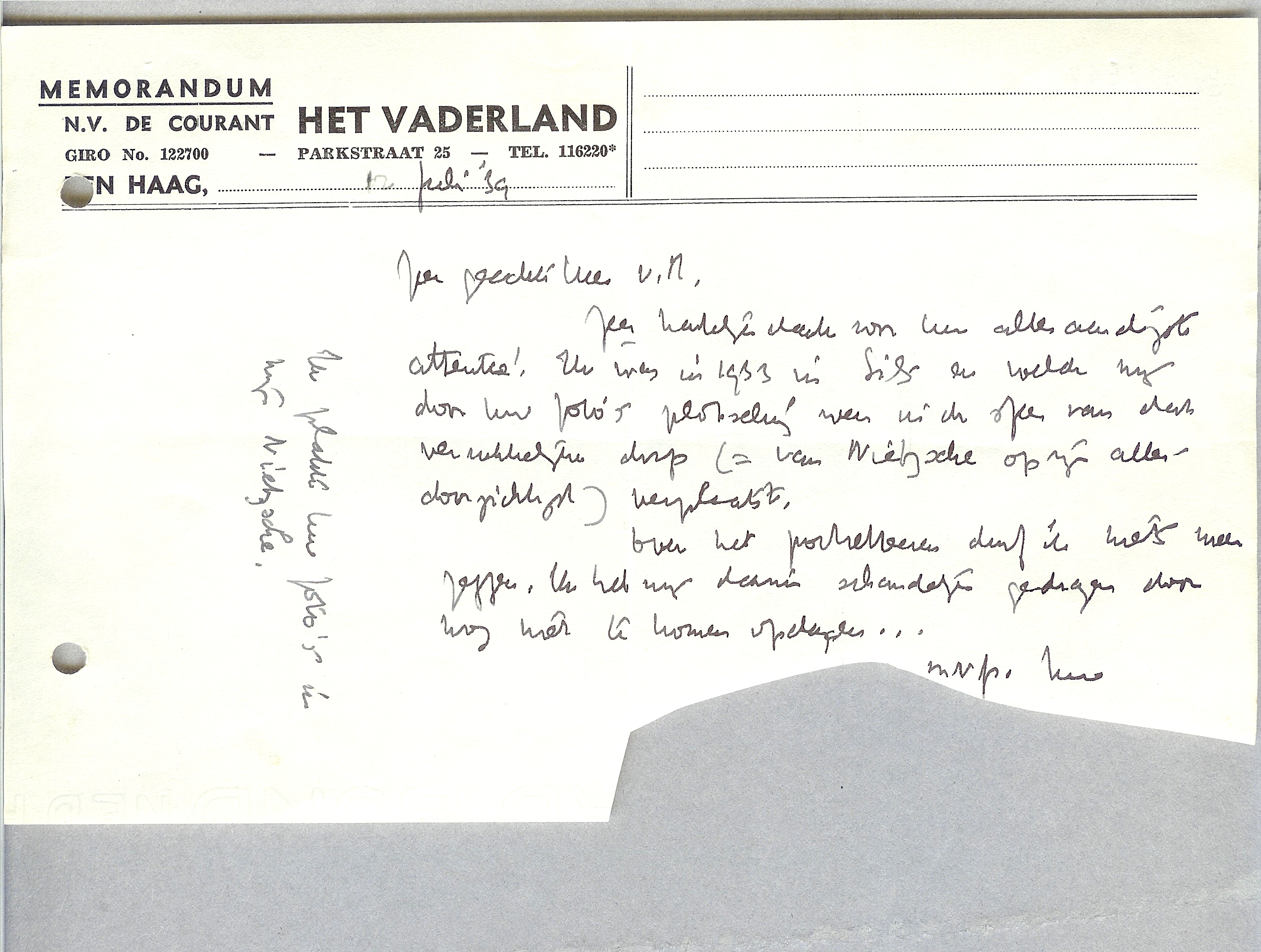 Zeer hartelijk dank voor uw alleraardigste attentie! Ik was in 1933 in Sils en voelde mij door uw foto's plotseling weer in de sfeer van dat verrukkelijke dorp (= van Nietzsche op zijn allerdoorzichtigst) verplaatst.