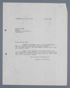 Mocht U een volgende keer terugzending van niet geplaatste copy wenschen dan wordt U verzocht daarvoor porto in te sluiten, daar anders over de inzendingen niet gecorrespondeerd wordt.