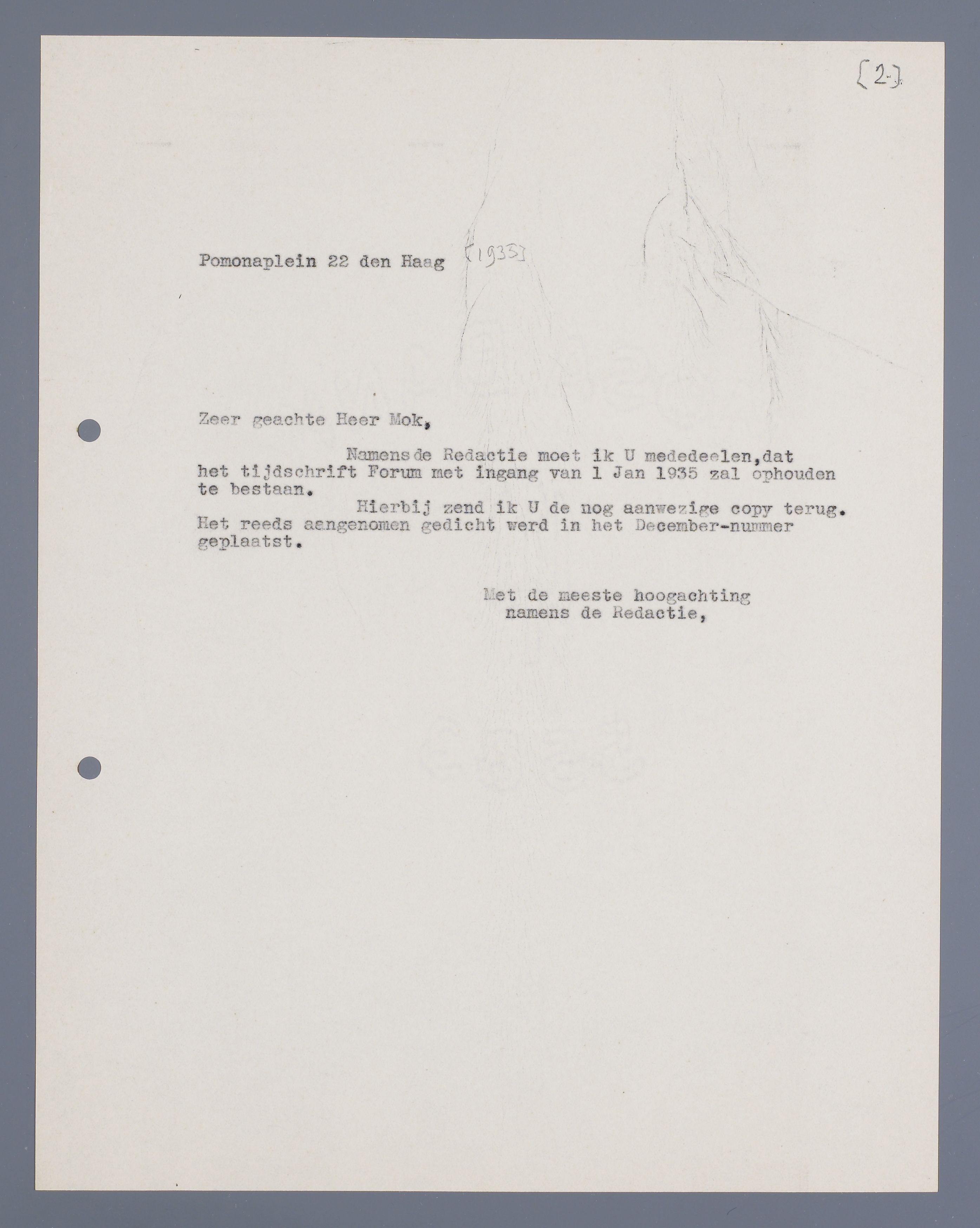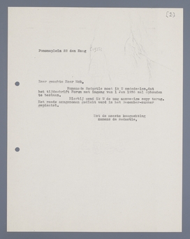 Namens de Redactie moet ik U mededeelen, dat het tijdschrift Forum met ingang van 1 Jan 1935 zal ophouden te bestaan.