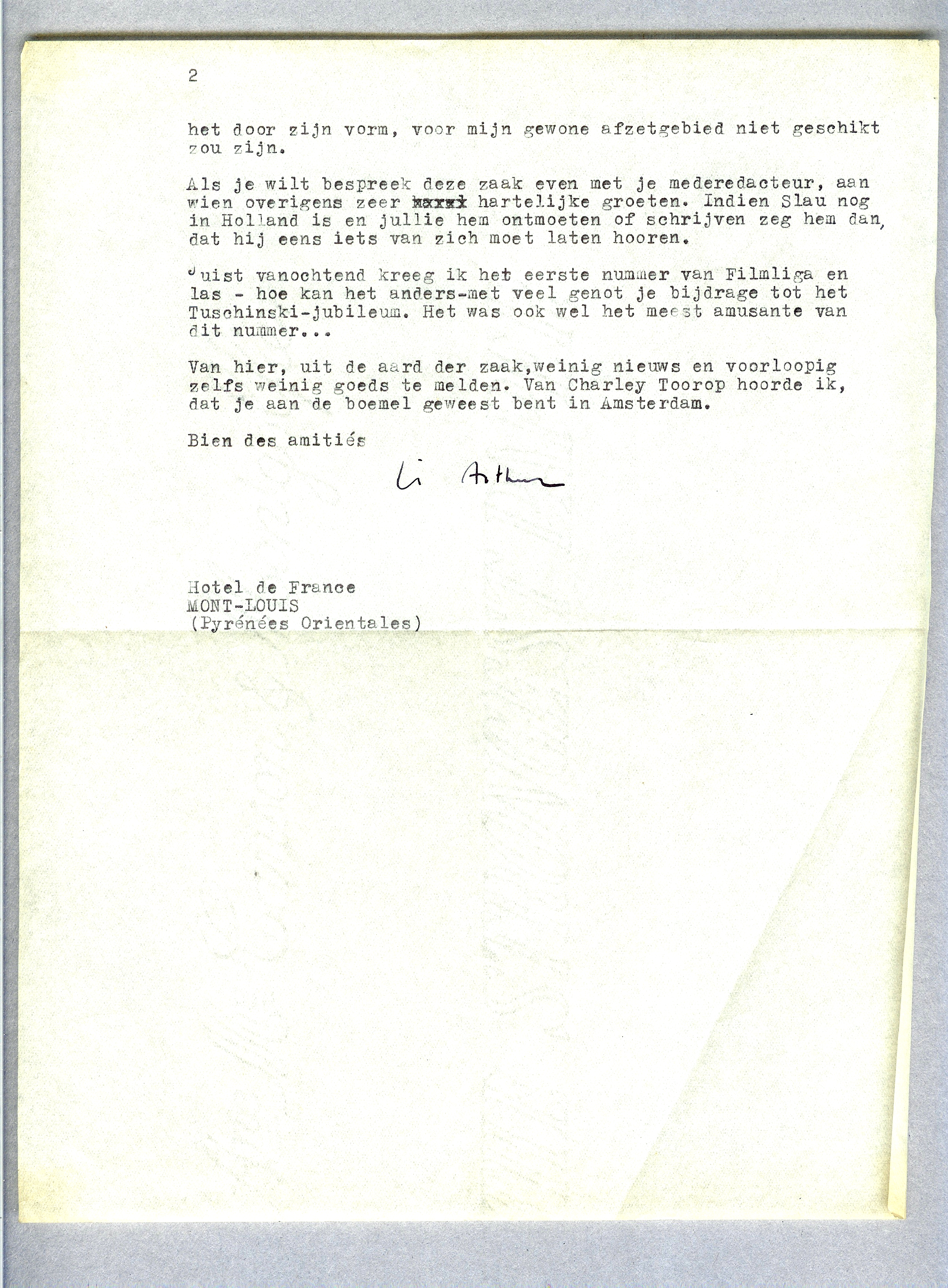 Juist vanochtend kreeg ik het eerste nummer van Filmliga en las - hoe kan het anders - met veel genot je bijdrage tot het Tuschinski-jubileum. Het was ook wel het meest amusante van dit nummer...