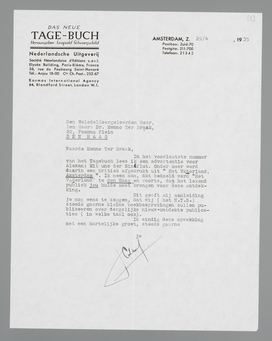In het voorlaatste nummer van het Tagebuch lees ik een advertentie voor Alexan: Mit uns der Sintflut. Onder meer werd daarin een kritiek afgedrukt uit ‘Het Vaterland, Amsterdam’. Ik neem aan, dat bedoeld werd ‘het Vaderland’ te den Haag en voorts, dat het lezend publiek jou hulde moet brengen voor deze ontdekking.
