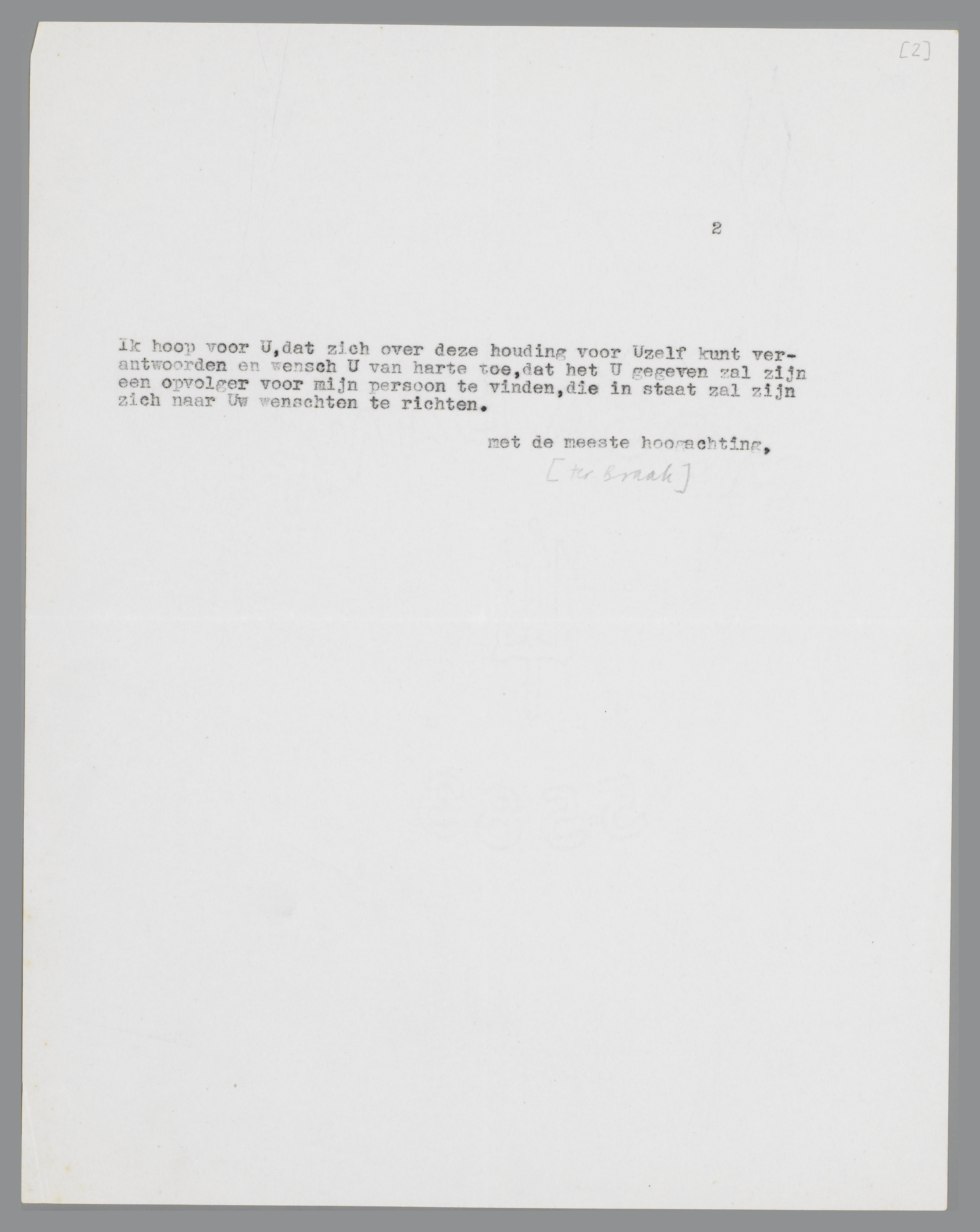 Ik hoop voor U, dat U zich over deze houding voor Uzelf kunt verantwoorden en wensch U van harte toe, dat het U gegeven zal zijn een opvolger voor mijn persoon te vinden, die in staat zal zijn zich naar Uw wenschen te richten.