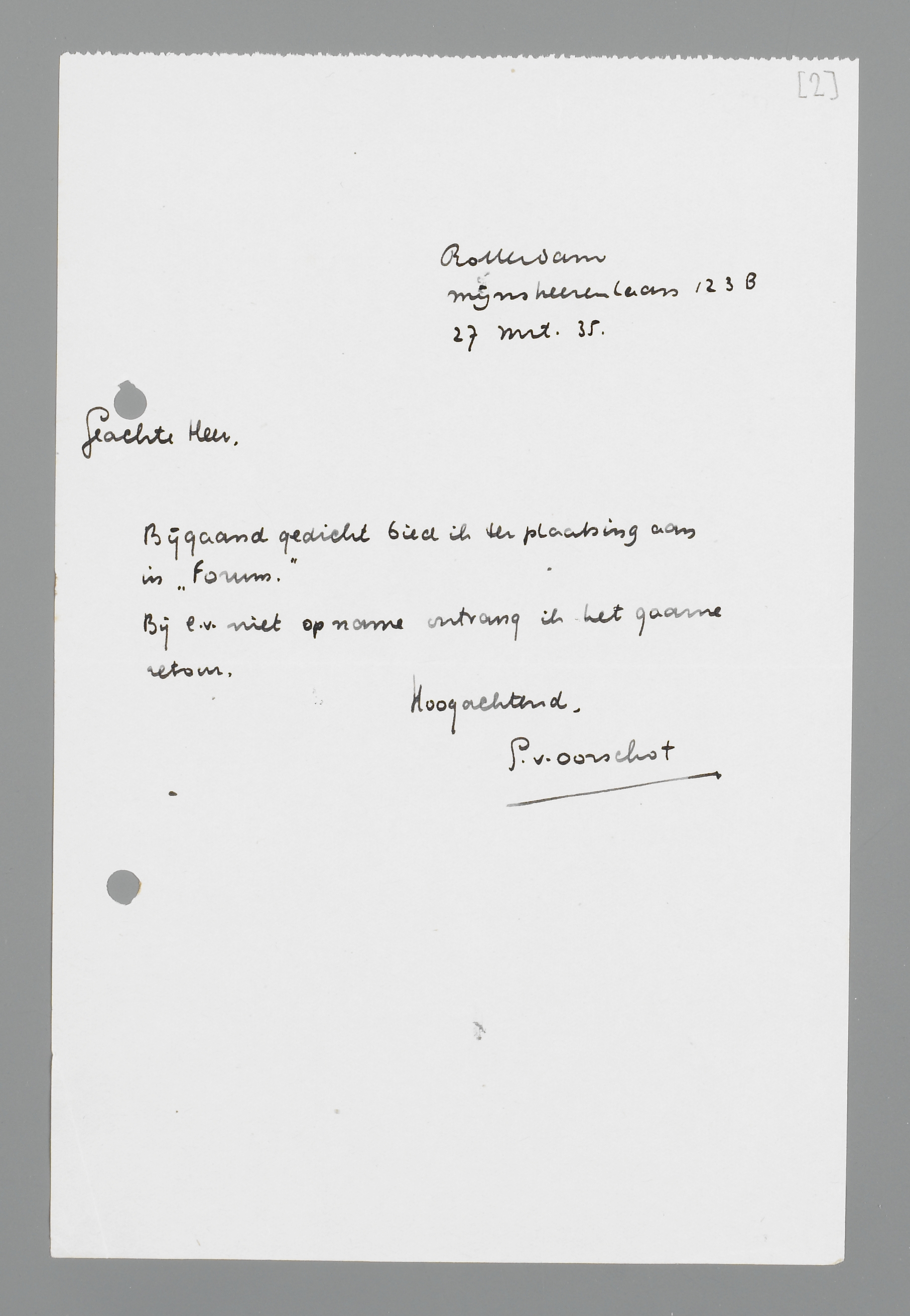 Bijgaand gedicht bied ik ter plaatsing aan in ‘Forum.’
