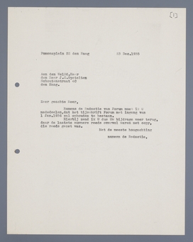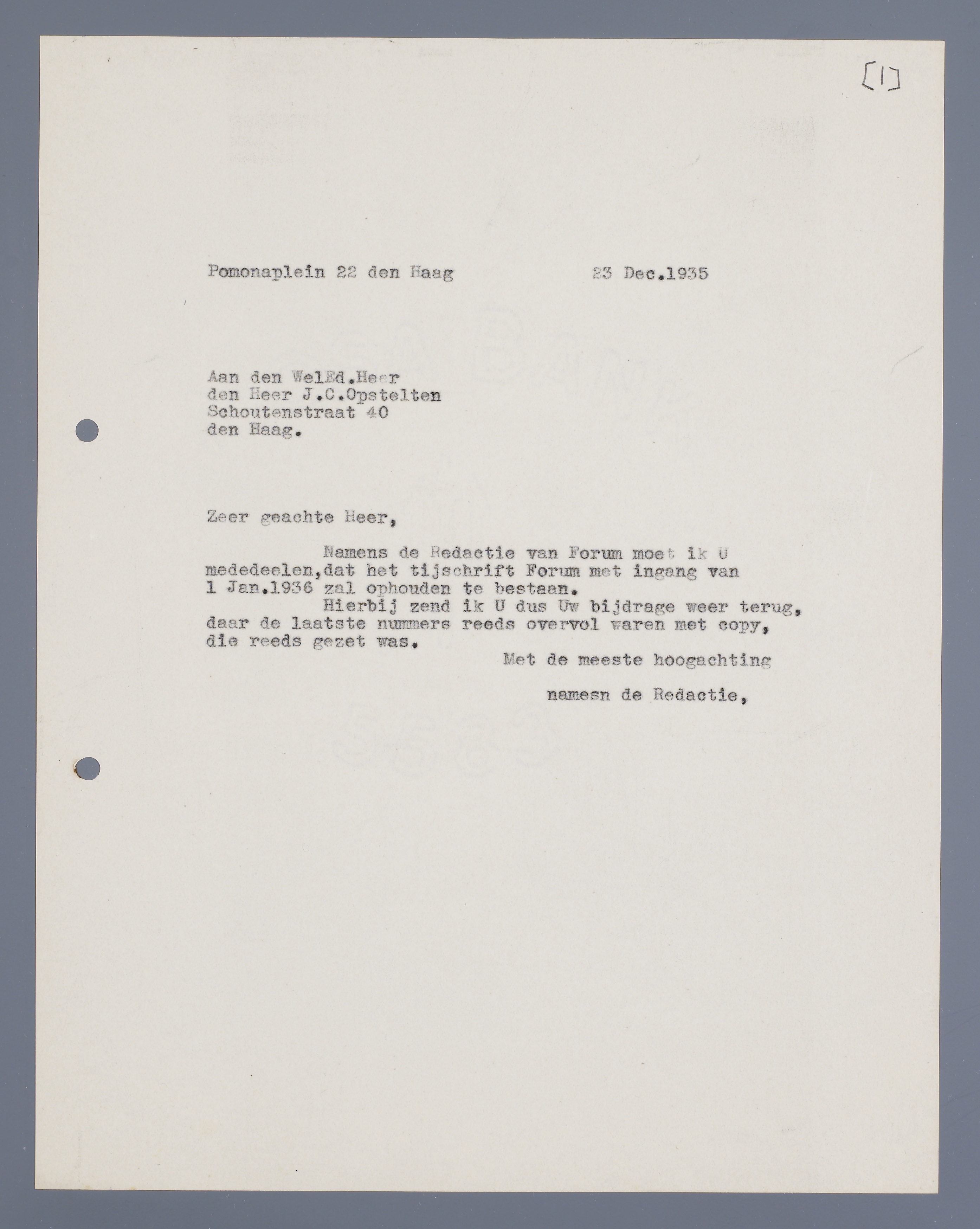Namens de Redactie van Forum moet ik U mededeelen, dat het tijdschrift Forum met ingang van 1 Jan. 1936 zal ophouden te bestaan.