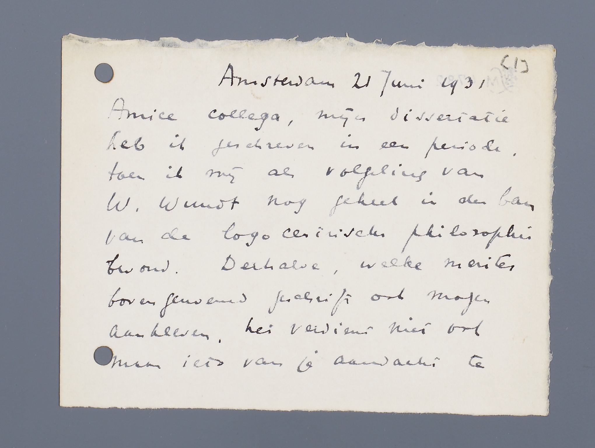 Mijn dissertatie heb ik geschreven in een periode, toen ik mij als volgeling van W. Wundt nog geheel in den ban van de logocentrische philosophie bevond.